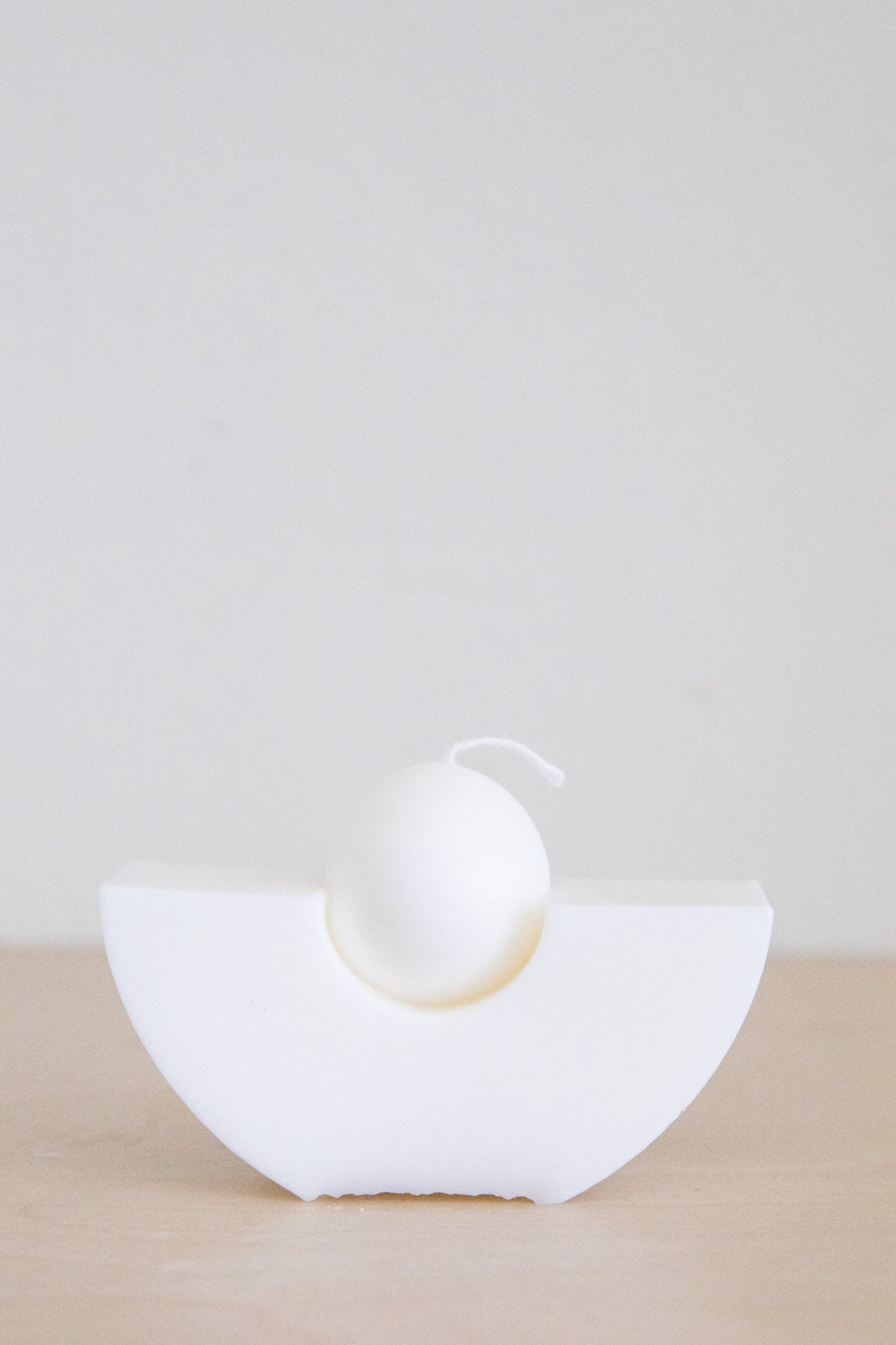 Mini sculptural candle featuring a hand poured shape perfectly fit for a coffee table or mantel.