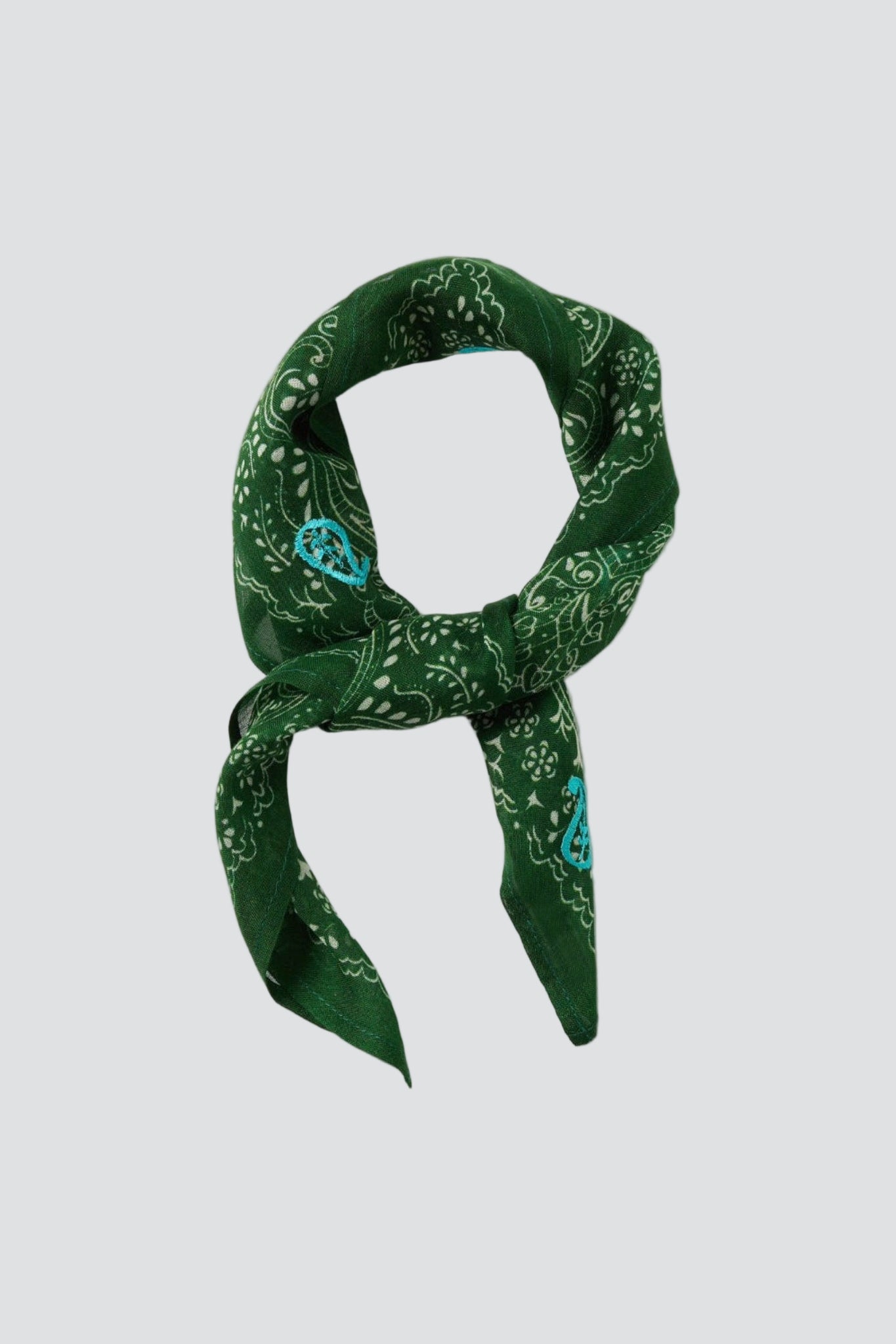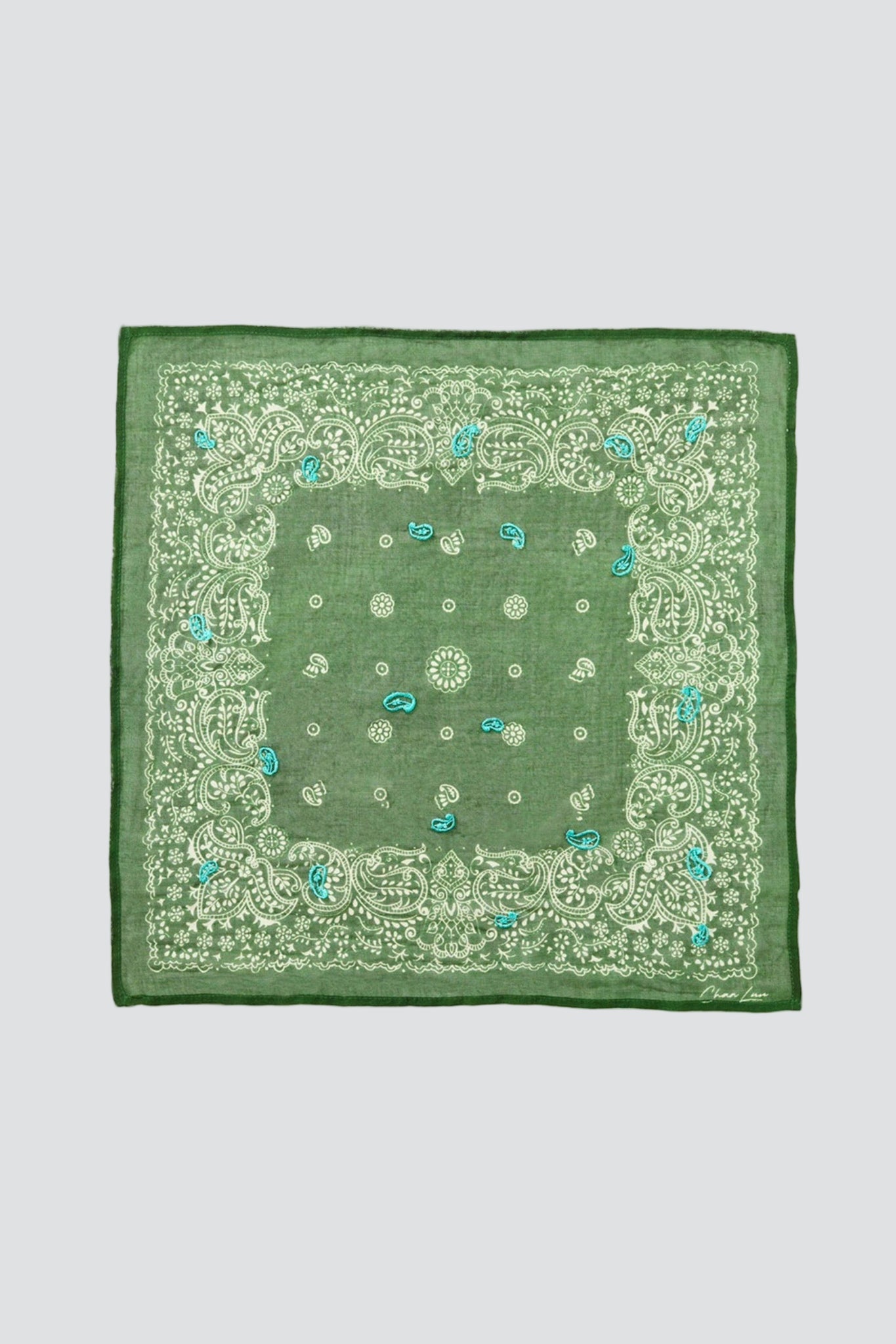 A classic bandana featuring a botanical paisley print with embroidered details.