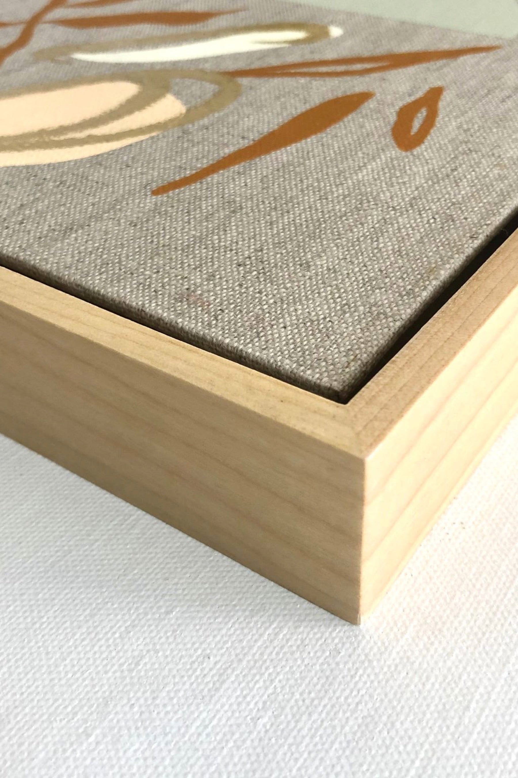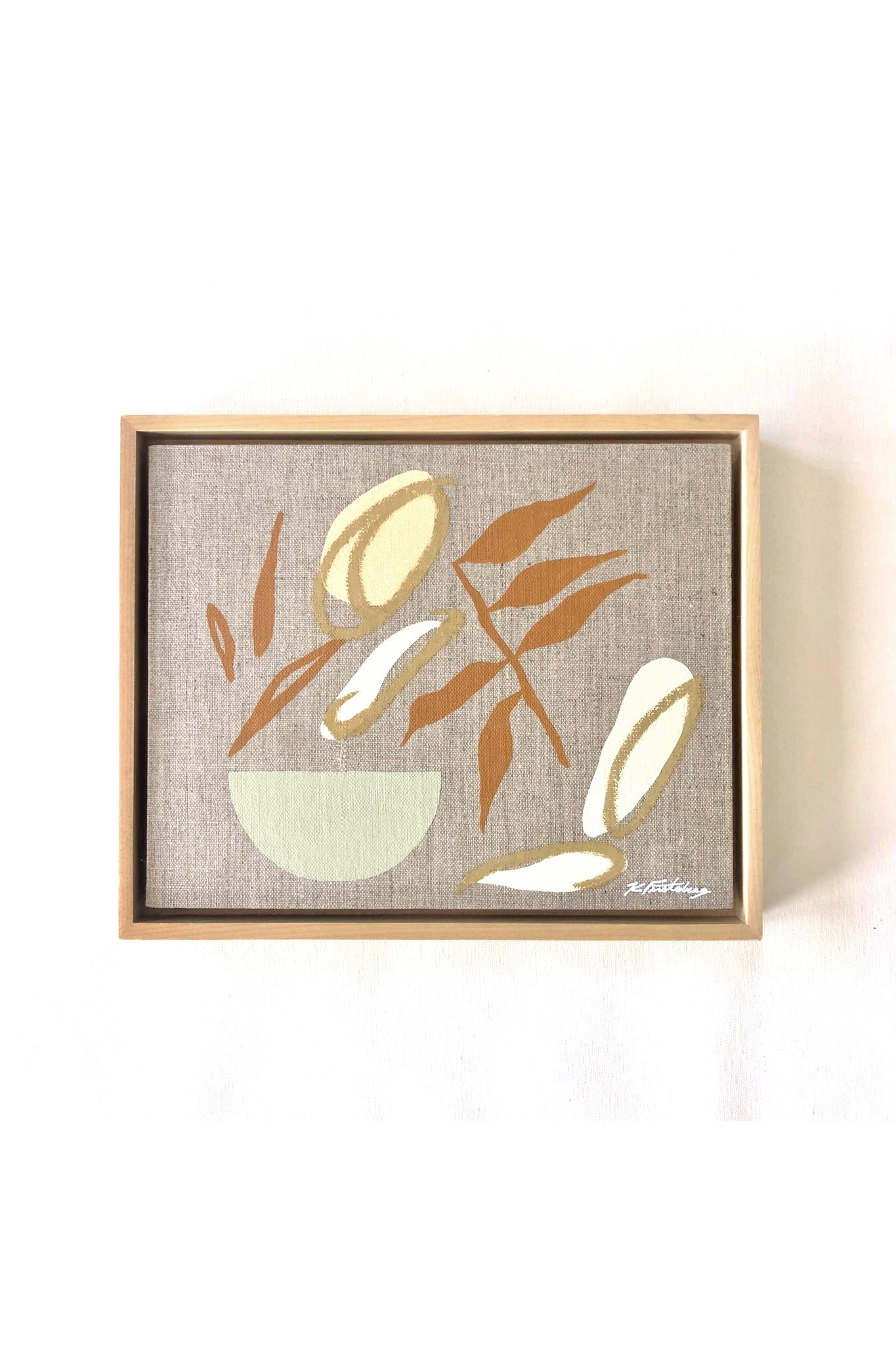 California artist Kara Firstenberger creates beautiful one of a kind mixed media paintings featuring abstract shapes and flora. Includes wood frame. Hand painted in Cardiff-by-the-Sea.