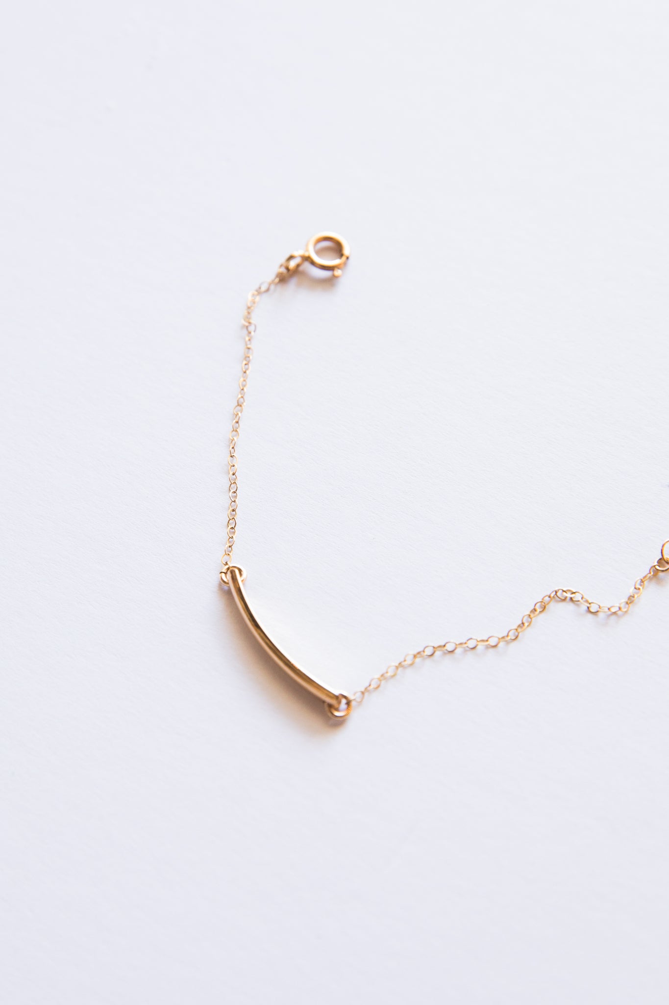 Minimal, dainty gold bracelet with adjustable closure.