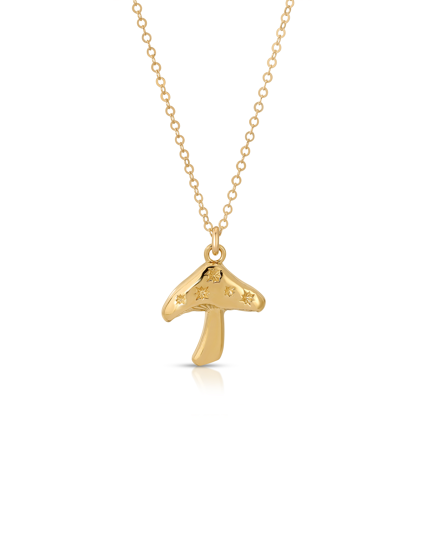 Add a playful charm to your outfit with our small mushroom pendant necklace. Quality jewelry designed in L.A. using sustainable materials with love for our Mother Earth.