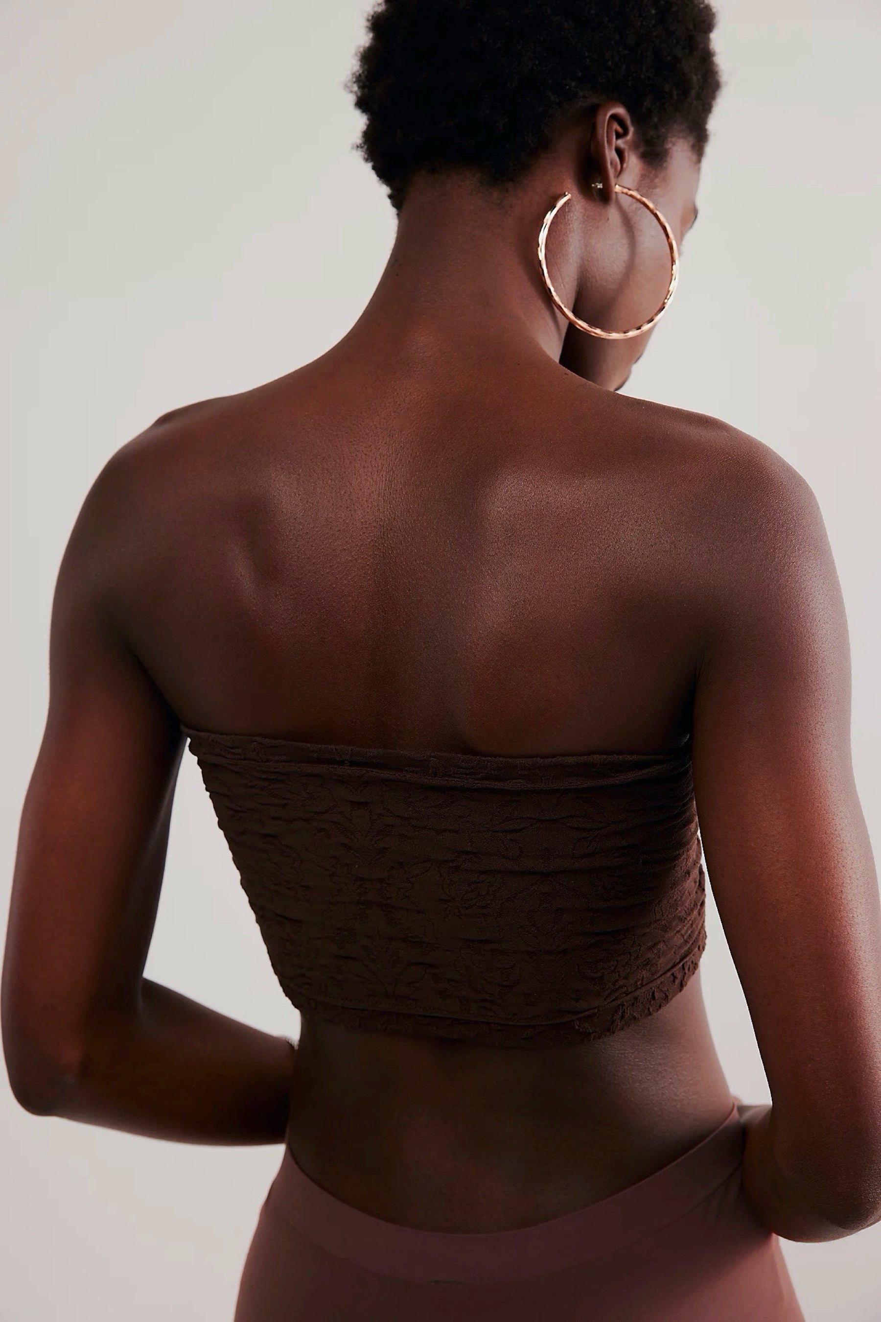 So femme and flattering, this essential bra is featured in a classic bandeau-style and textured fabrication with floral detail throughout and knotted center.