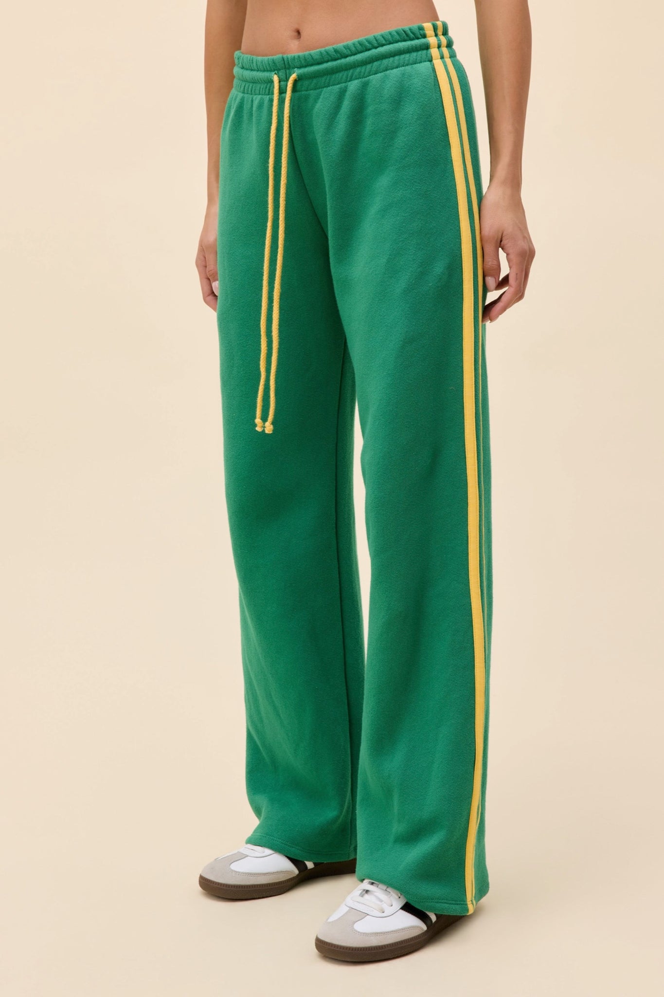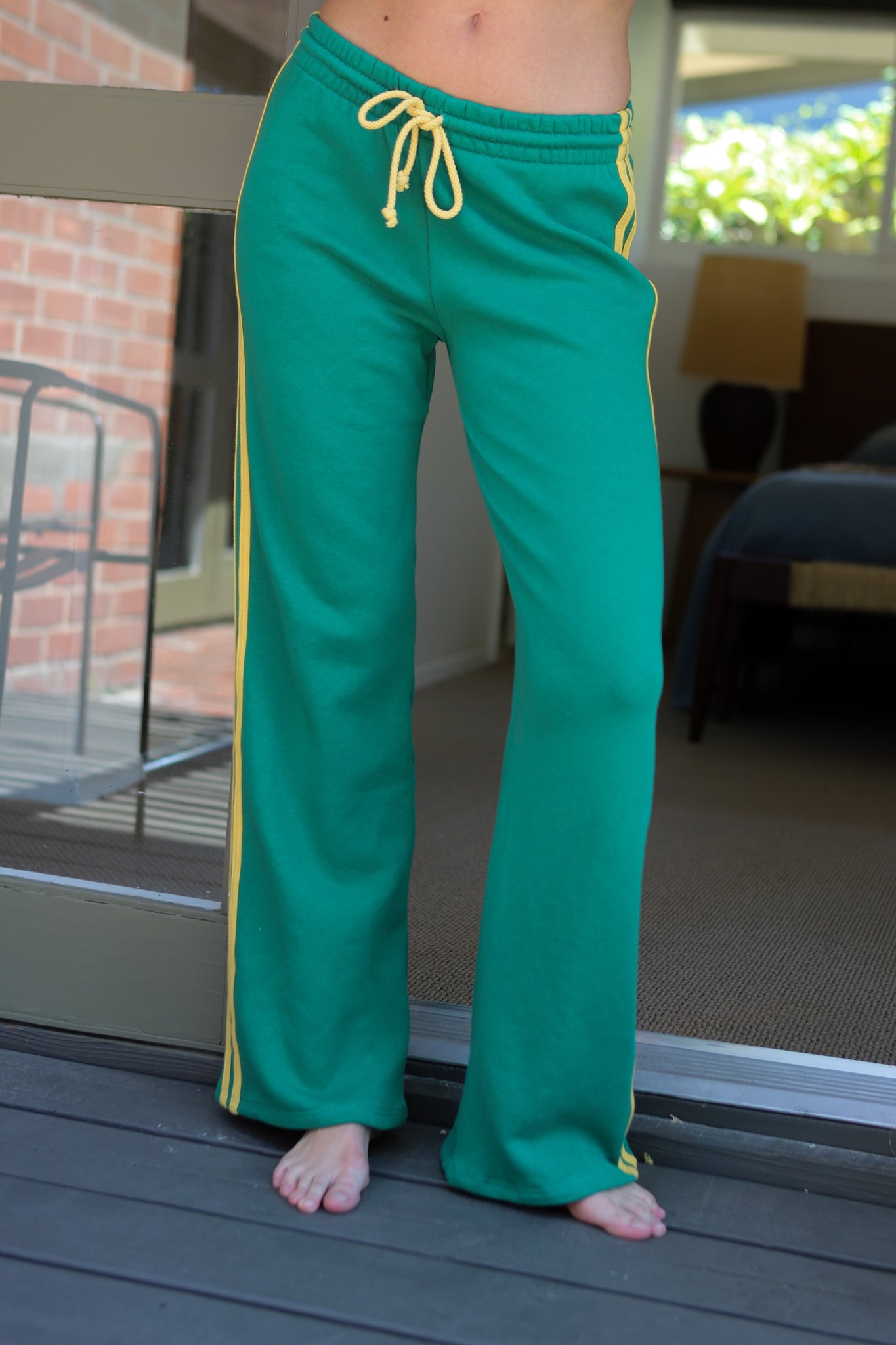 Kick back in a sport-inspired track pant designed with a drawstring waist and double stripes down both legs. Made in LA.