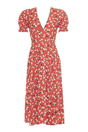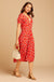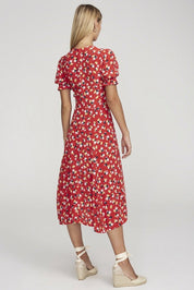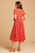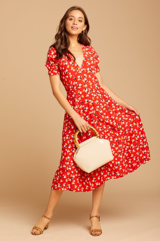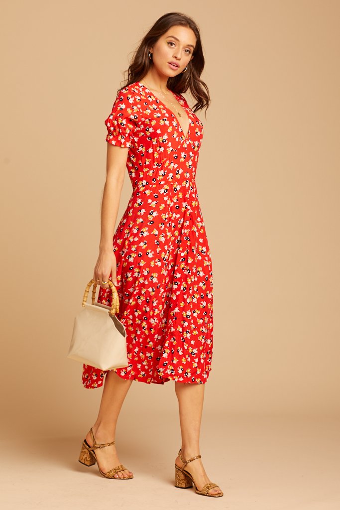 Midi dress with puff frill sleeves, deep V neckline and invisible zipper to the back. Perfect for your Spring endeavors!