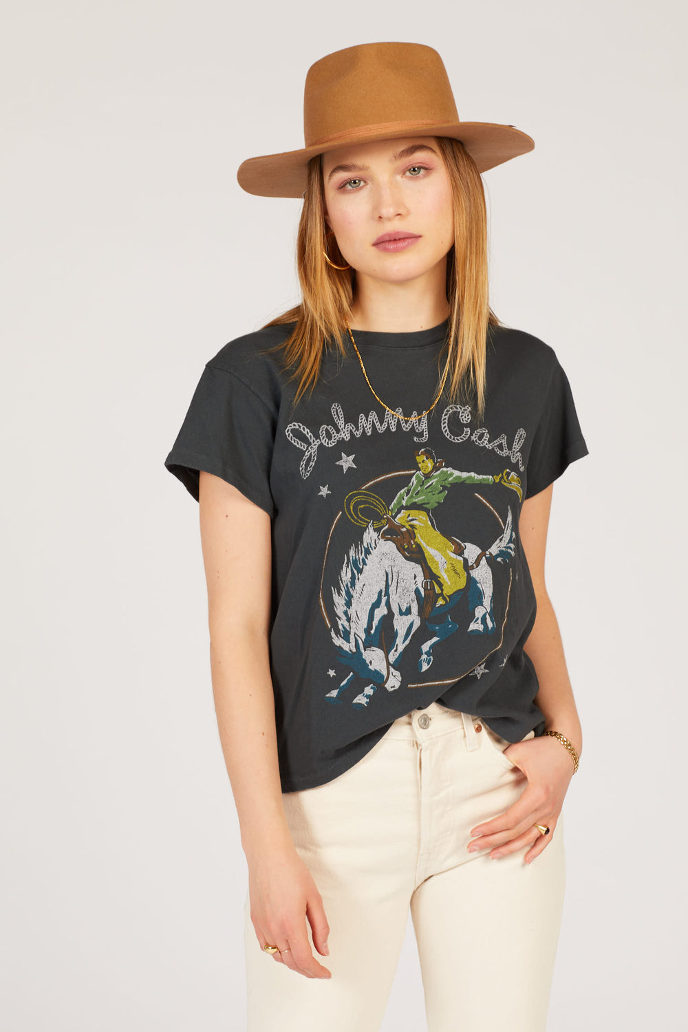 Talk about country classic, Johnny Cash entered the music scene in Nashville but eventually found his way across multiple genres just like this faded graphic is going to find its way into most of your upcoming outfits.
