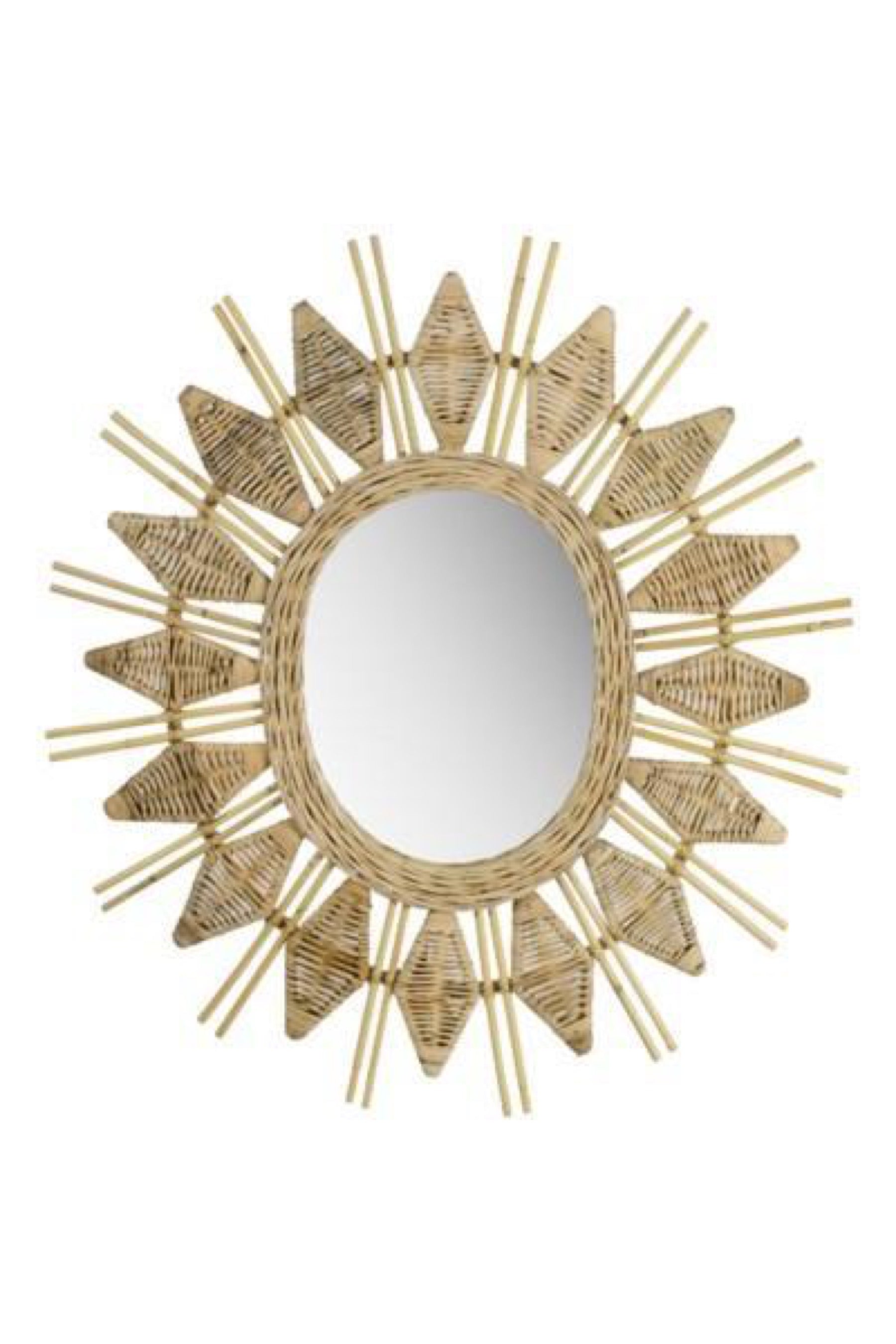 Oversized mirror featuring a rattan and wood design from the Justina Blakeney collection.