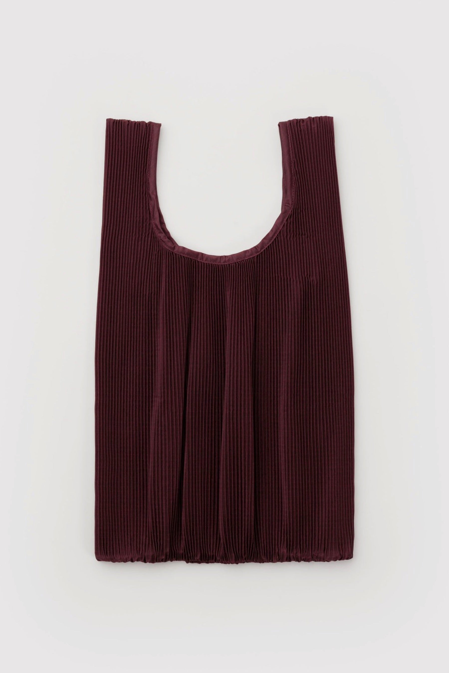 A special, pleated version of the classic Baggu shape that can be worn as a dressier, fashion forward catch-all bag. Hold 30 lbs.