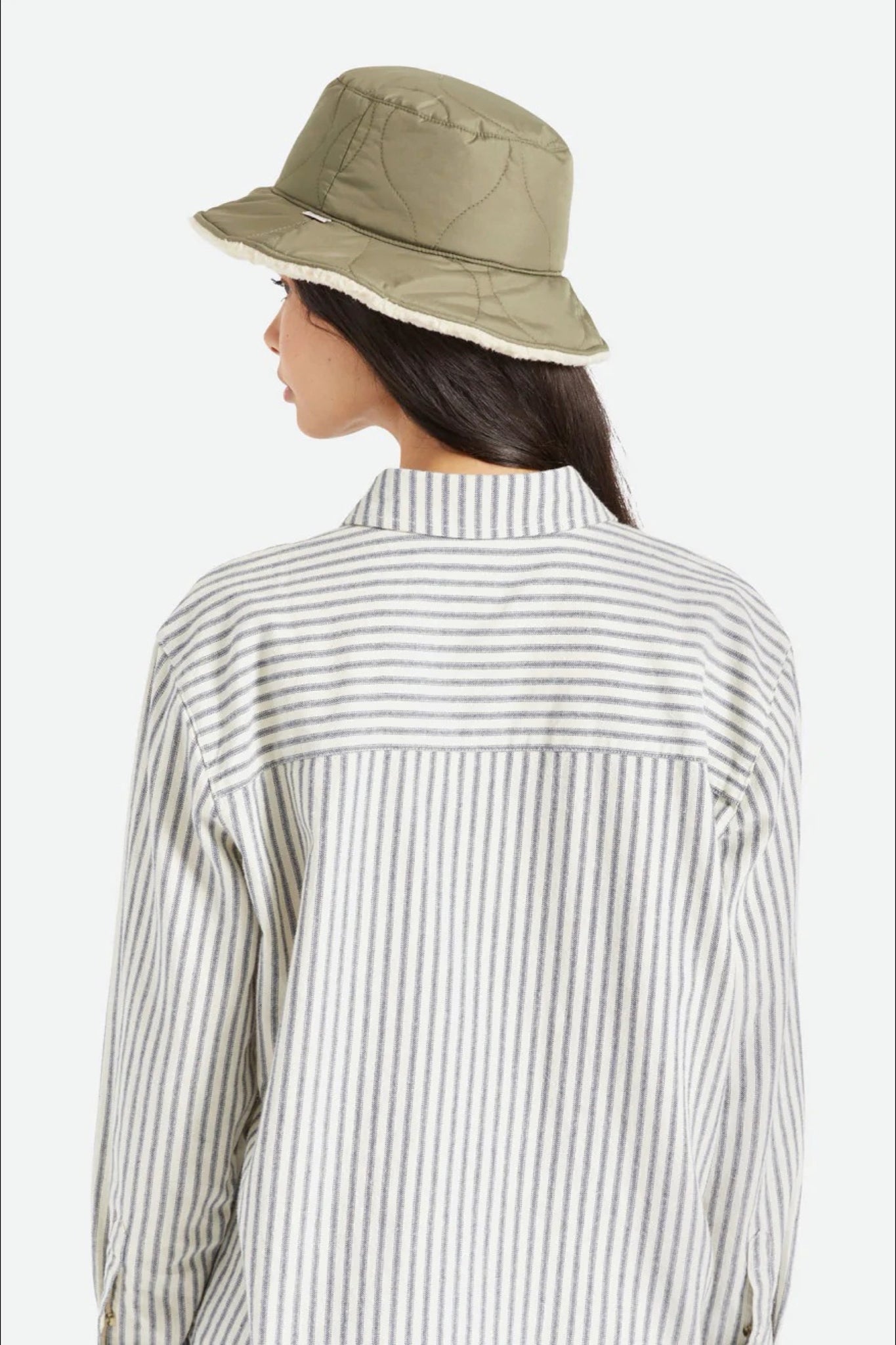 A reversible bucket hat with spirit. This iteration of the Petra features two signature sides; a plush sherpa lining and opposing quilted face. Reversible, packable and shapeable, this one is designed to keep you exploring.