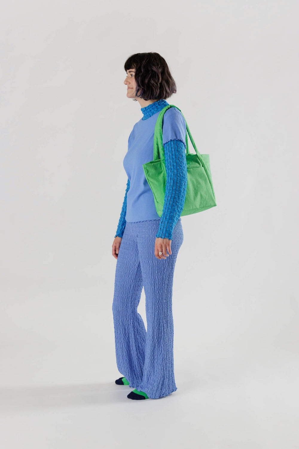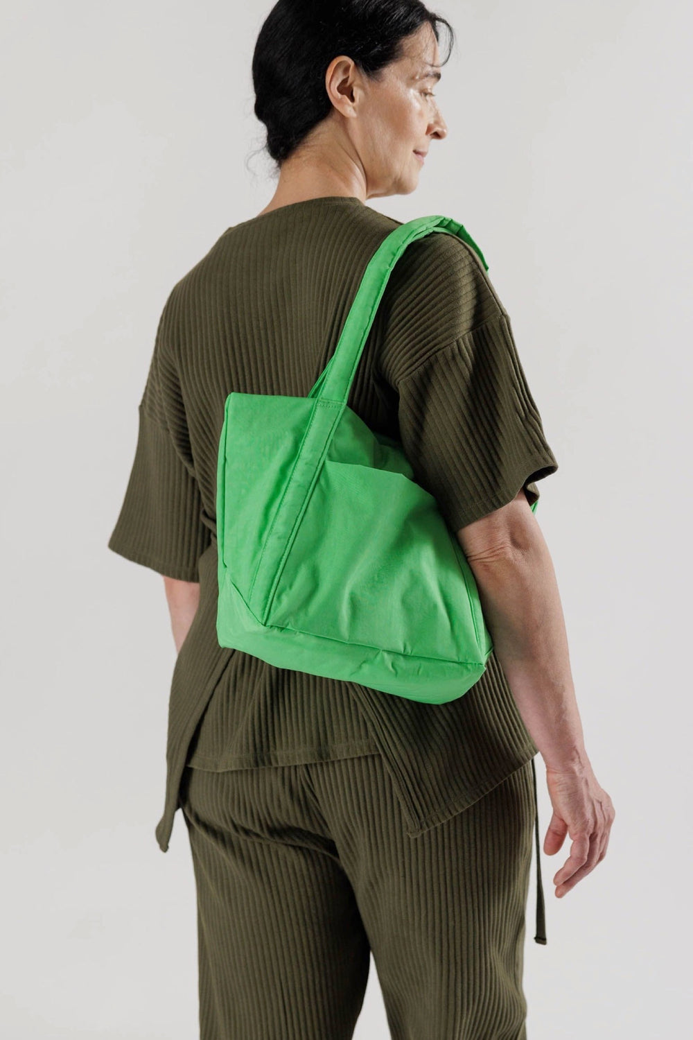 This feather light tote is made from durable heavyweight nylon, making it easy to wash. Complete with a top zip closure and padded straps for comfortable toting. Packs down into its detachable interior pocket.