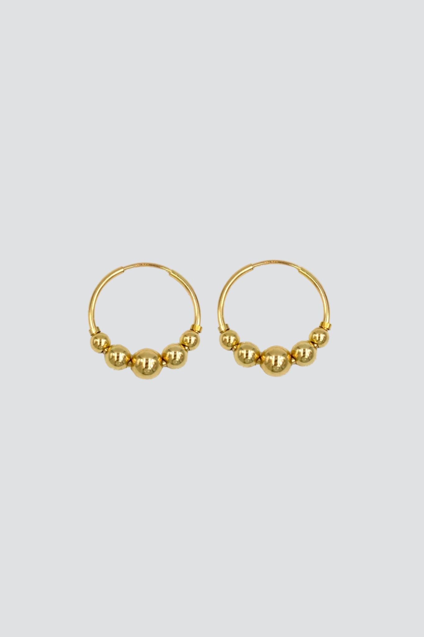 Graduated beads float on hoop earrings.
