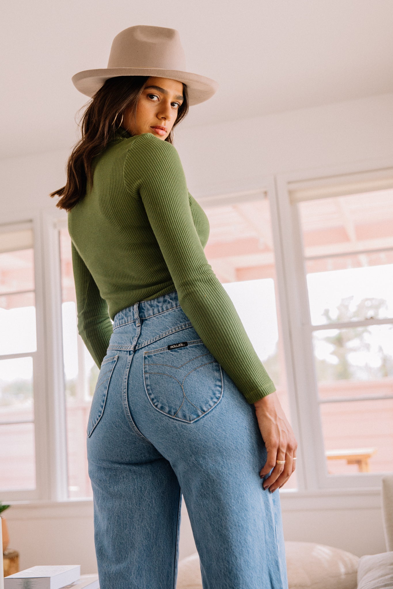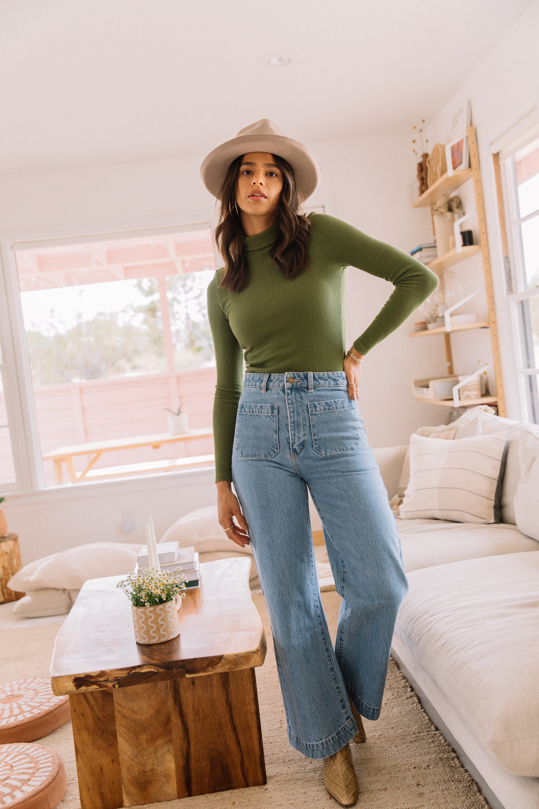 The perfect fitted turtleneck to warm up your closet in a cozy textured ribbed fabric.