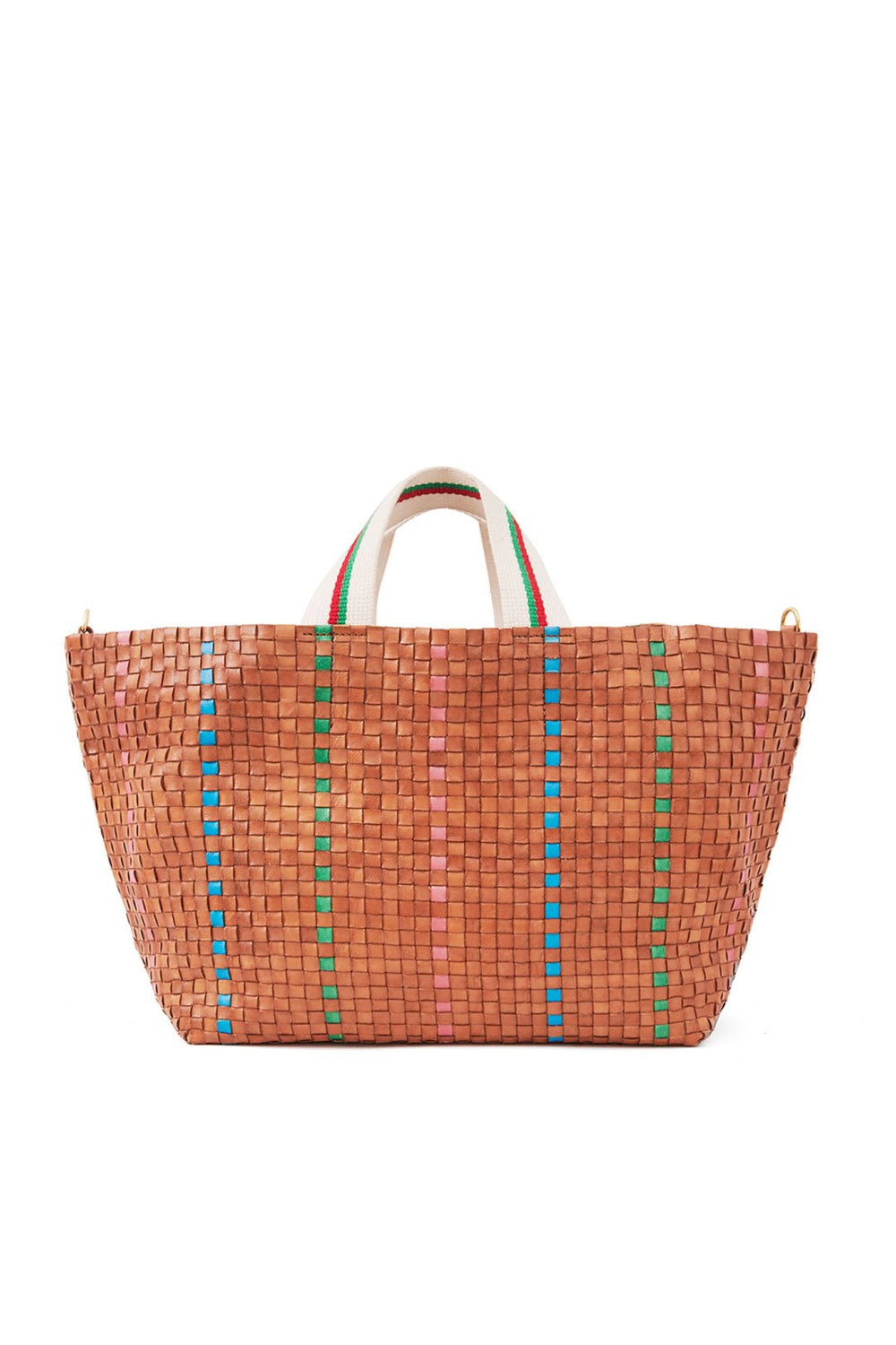 The Bateau Tote is an easy top handle tote with a flat bottom, while striped cotton webbing straps and adjustable interior hooks make it feel like an everyday bag. Includes a clasp and d-ring to cinch the bag and give it a new shape.