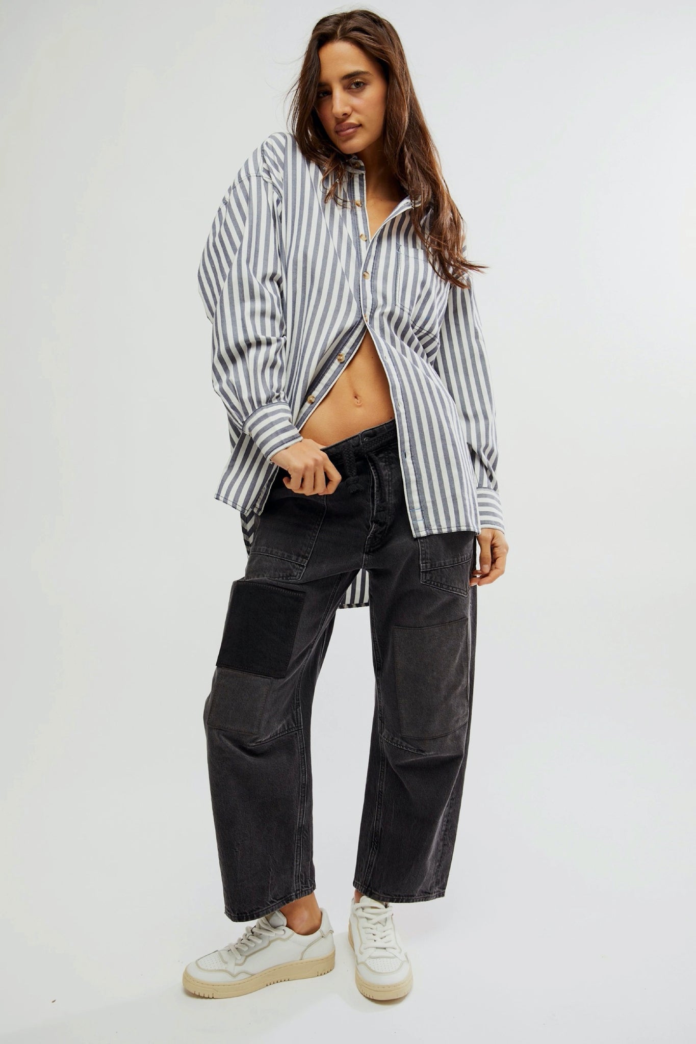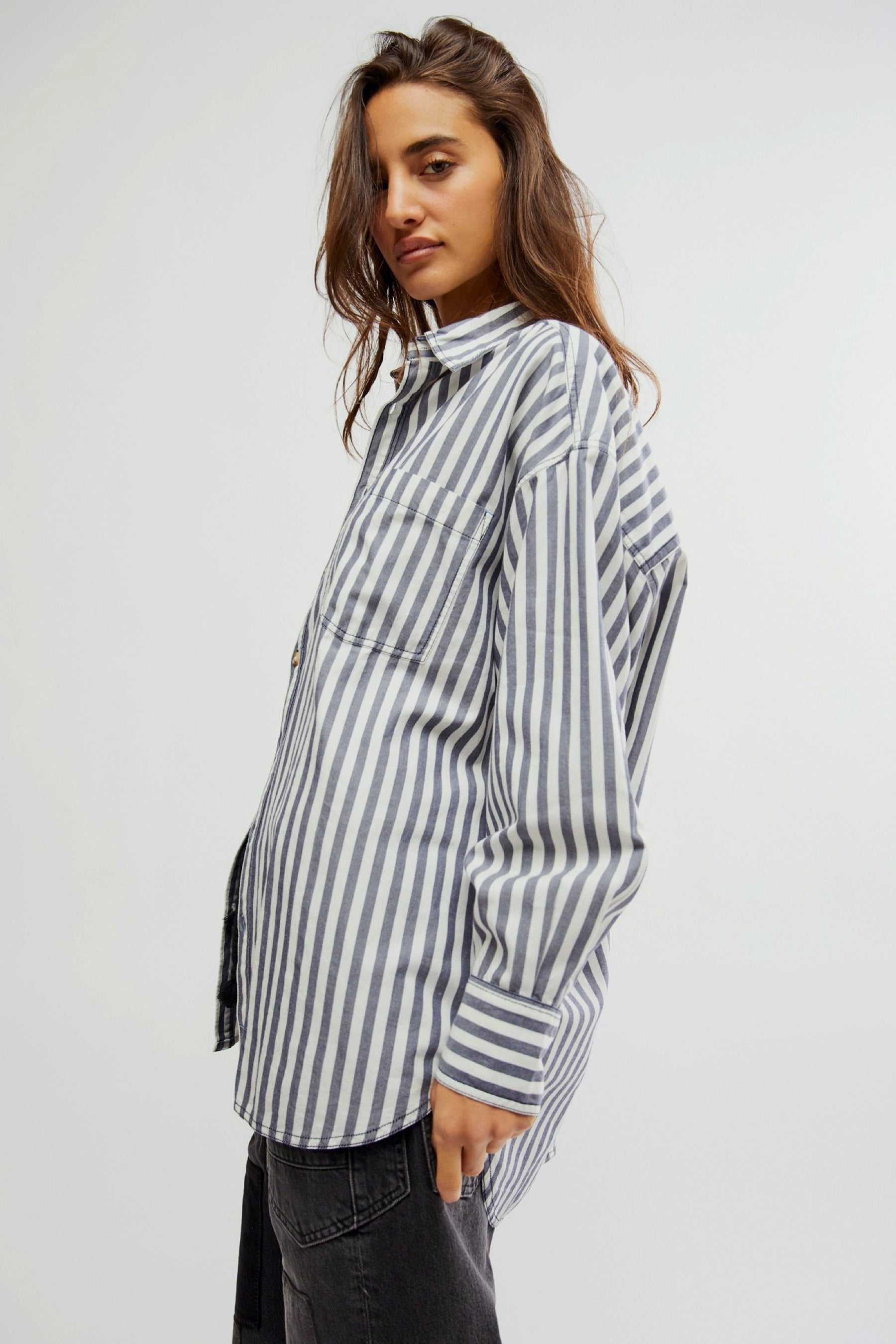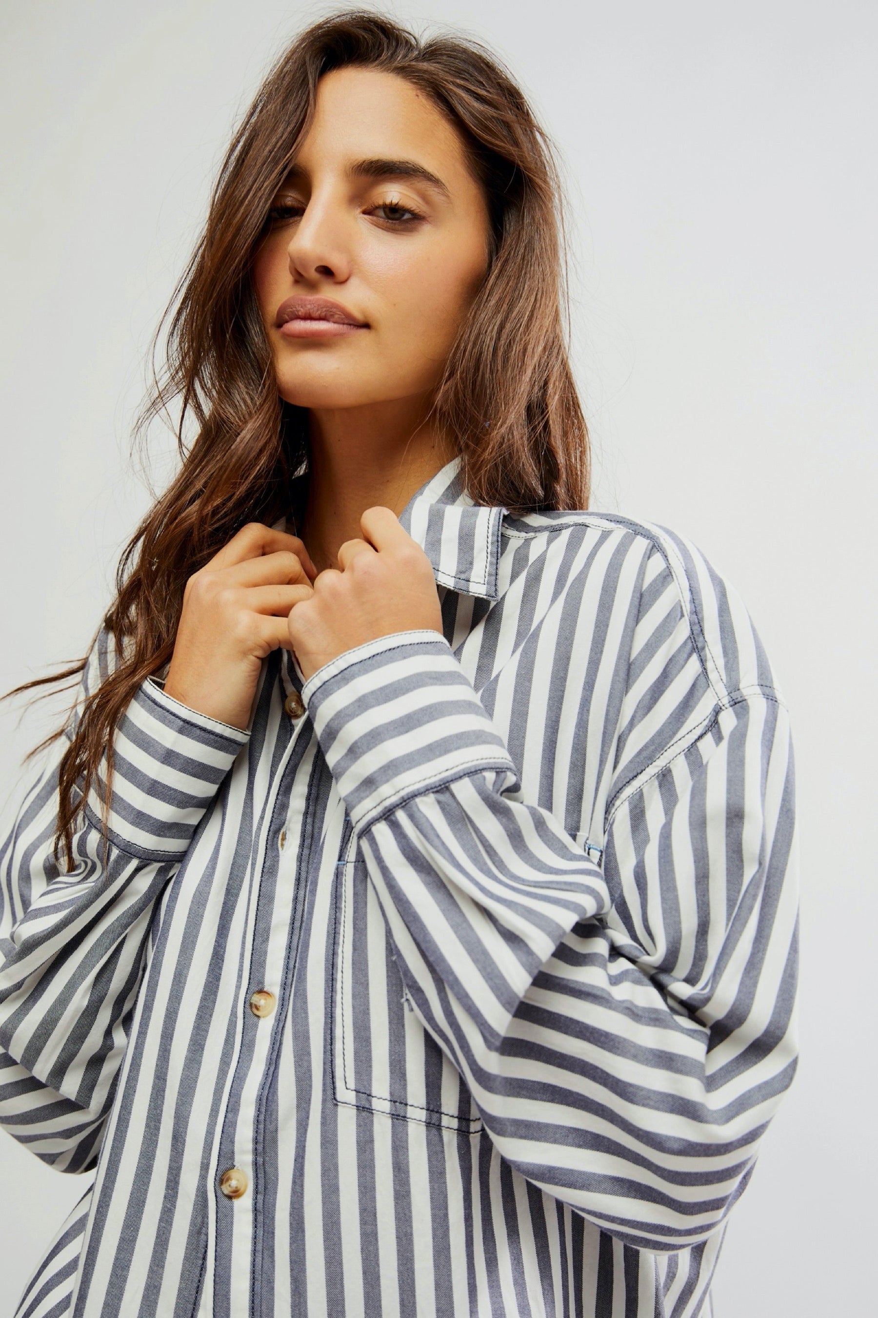 The perfect button down from the We The Free collection, this classic shirt is featured in a cool cotton fabrication and oversized fit with dropped shoulders and a collared neckline.