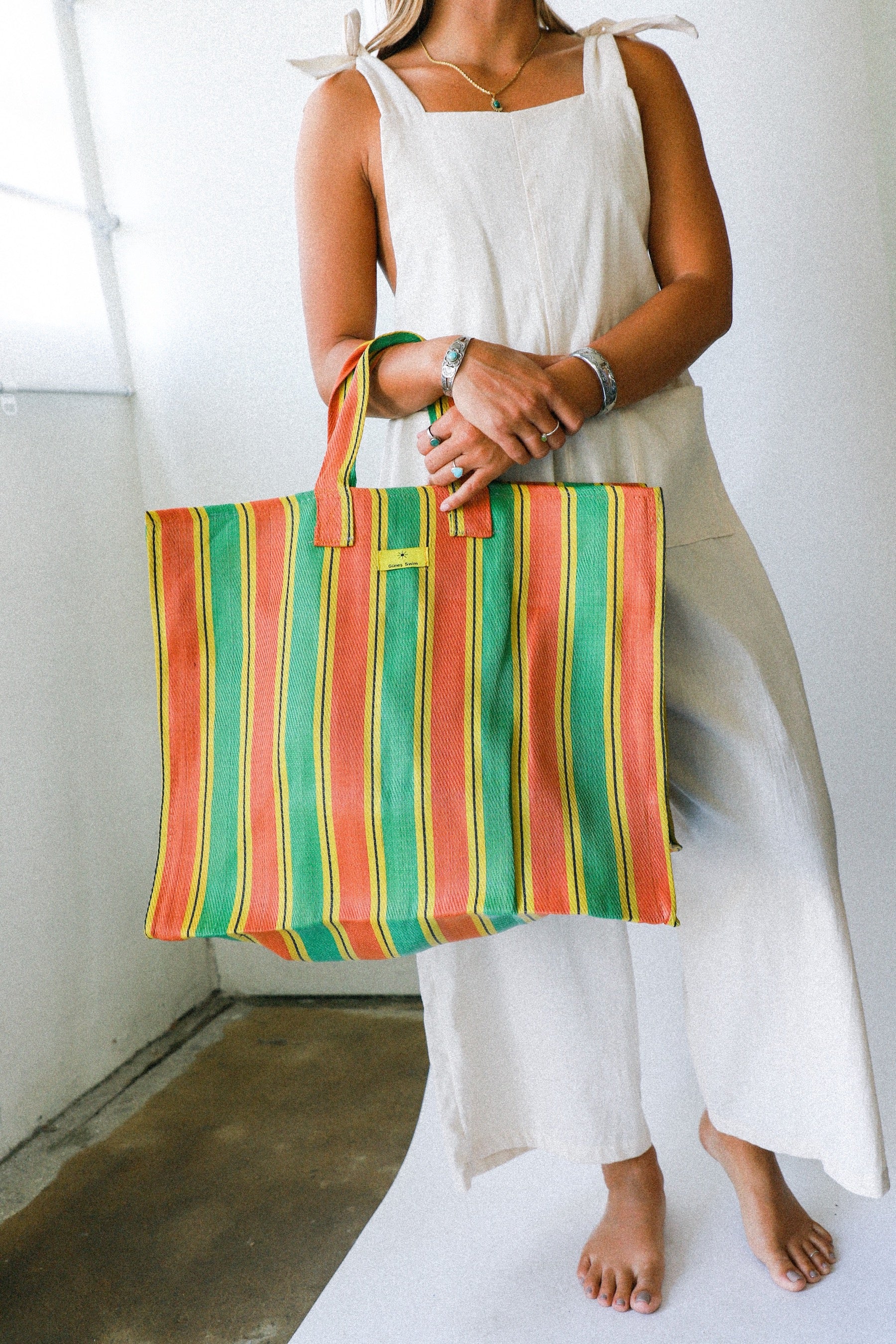 This fairtrade tote is ideal for beach essentials, car trips, taking to the markets or storage at home. Each bag is hand-made in unique color combinations and most are made from recycled materials.