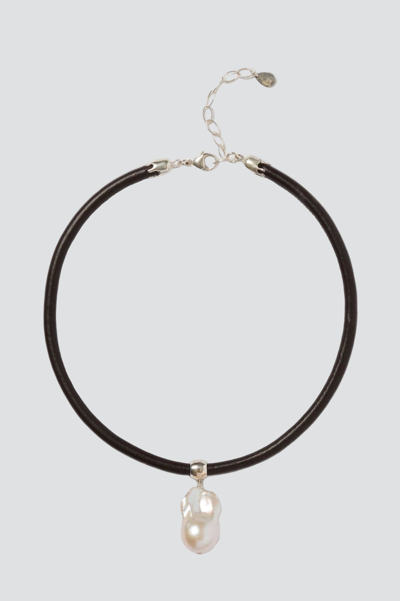 Materials: Sterling Silver, White Baroque Pearl, Stitched Leather Cording