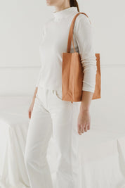 A structured canvas shoulder bag that goes anywhere and hauls everything you need for the day. Constructed from one piece of fabric to reduce waste, with slightly stiffened material that holds its shape and folds down flat.