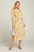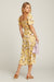 The Majorelle Midi Dress features a ruched bodice, elasticated puff sleeve details, and a fixed bow detail on the front and side splits of the skirt. With its soft floral print, this dress is perfect paired with a white sandal and shades.