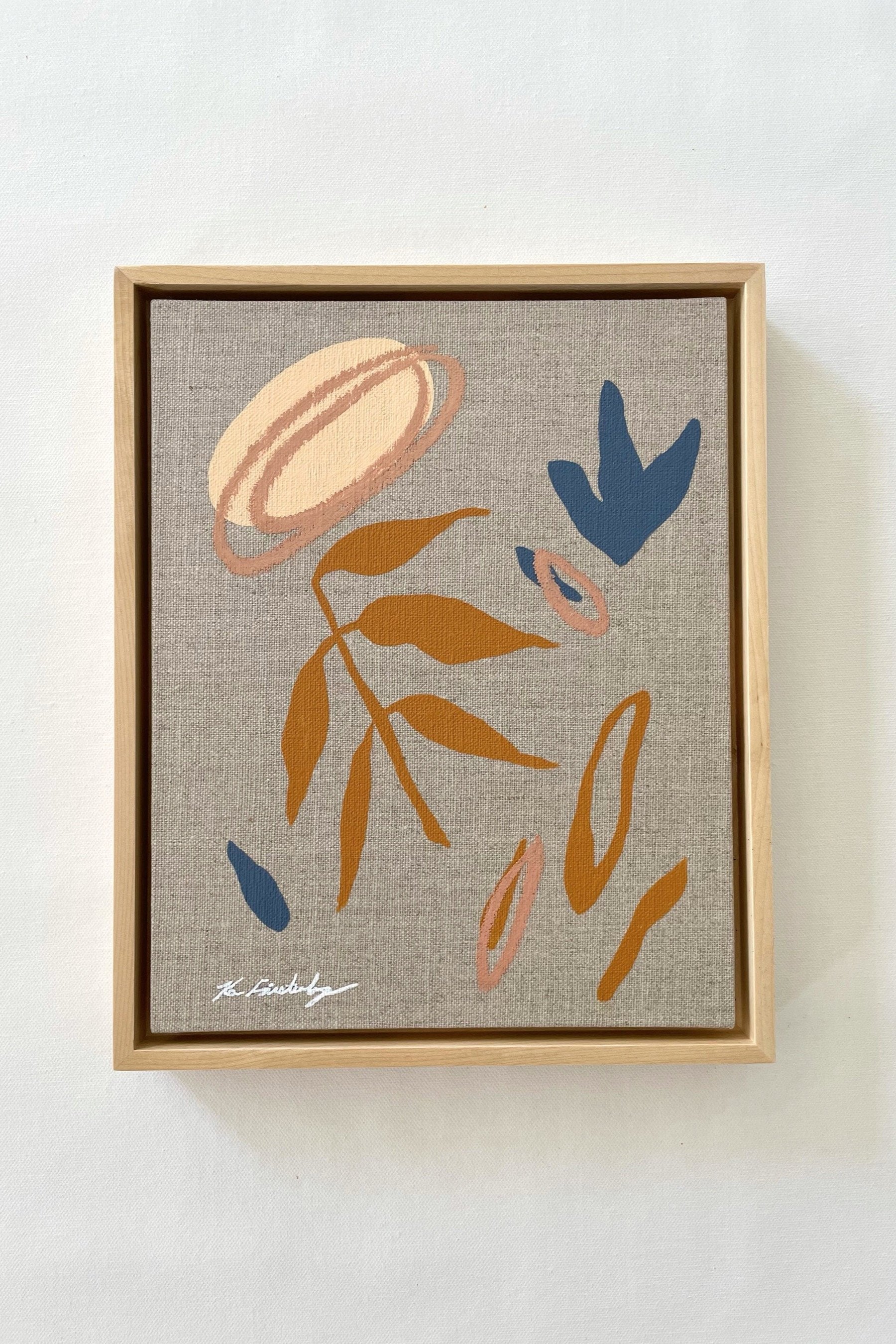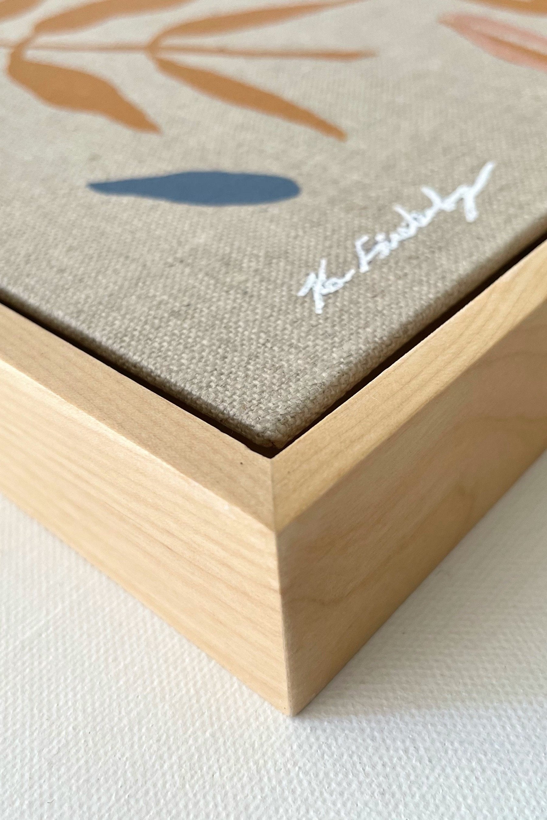California artist Kara Firstenberger creates beautiful one of a kind mixed media paintings featuring abstract shapes and flora. Includes wood frame. Hand painted in Cardiff-by-the-Sea.