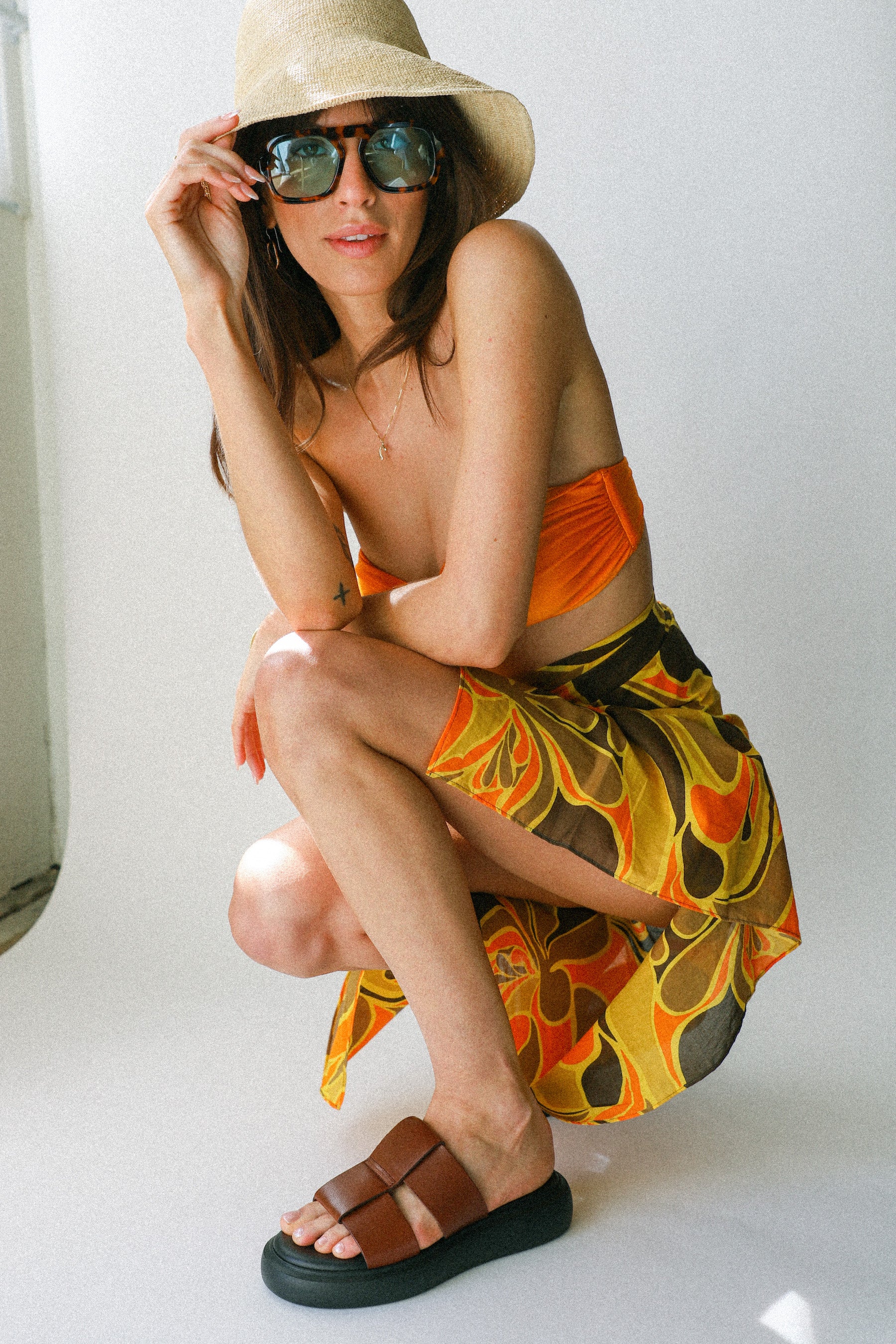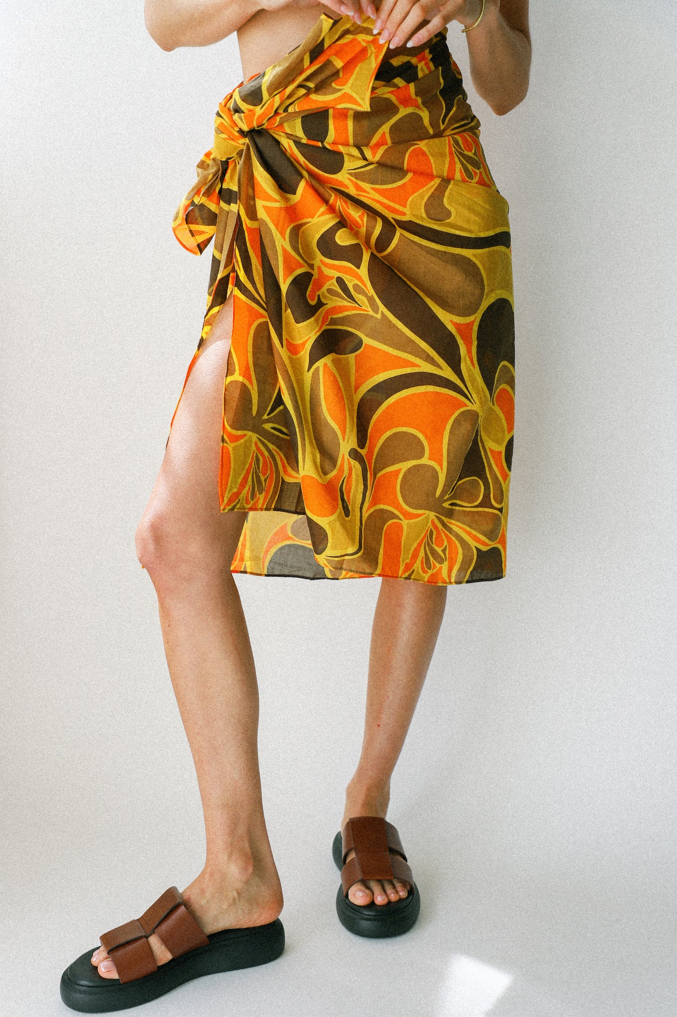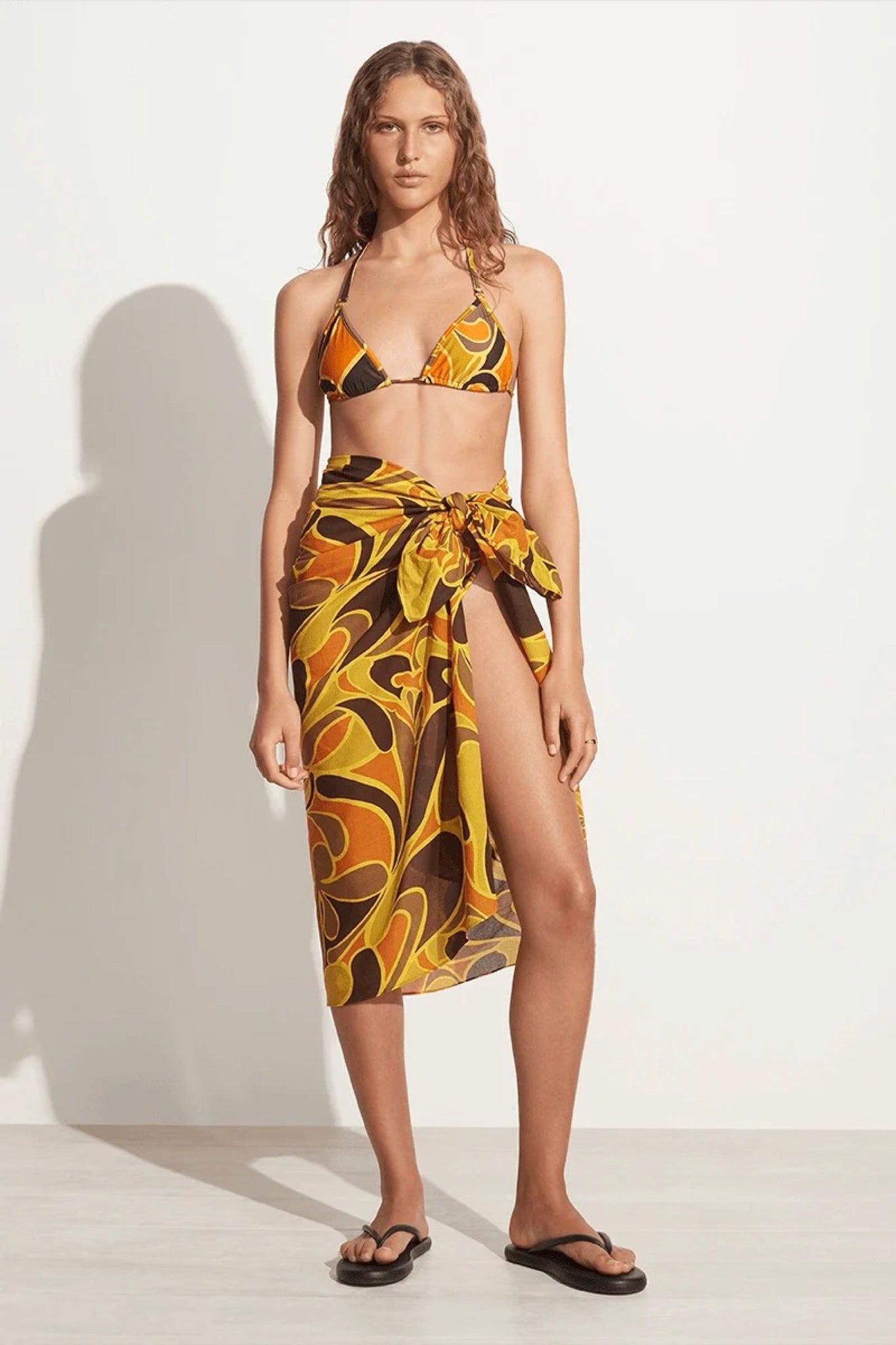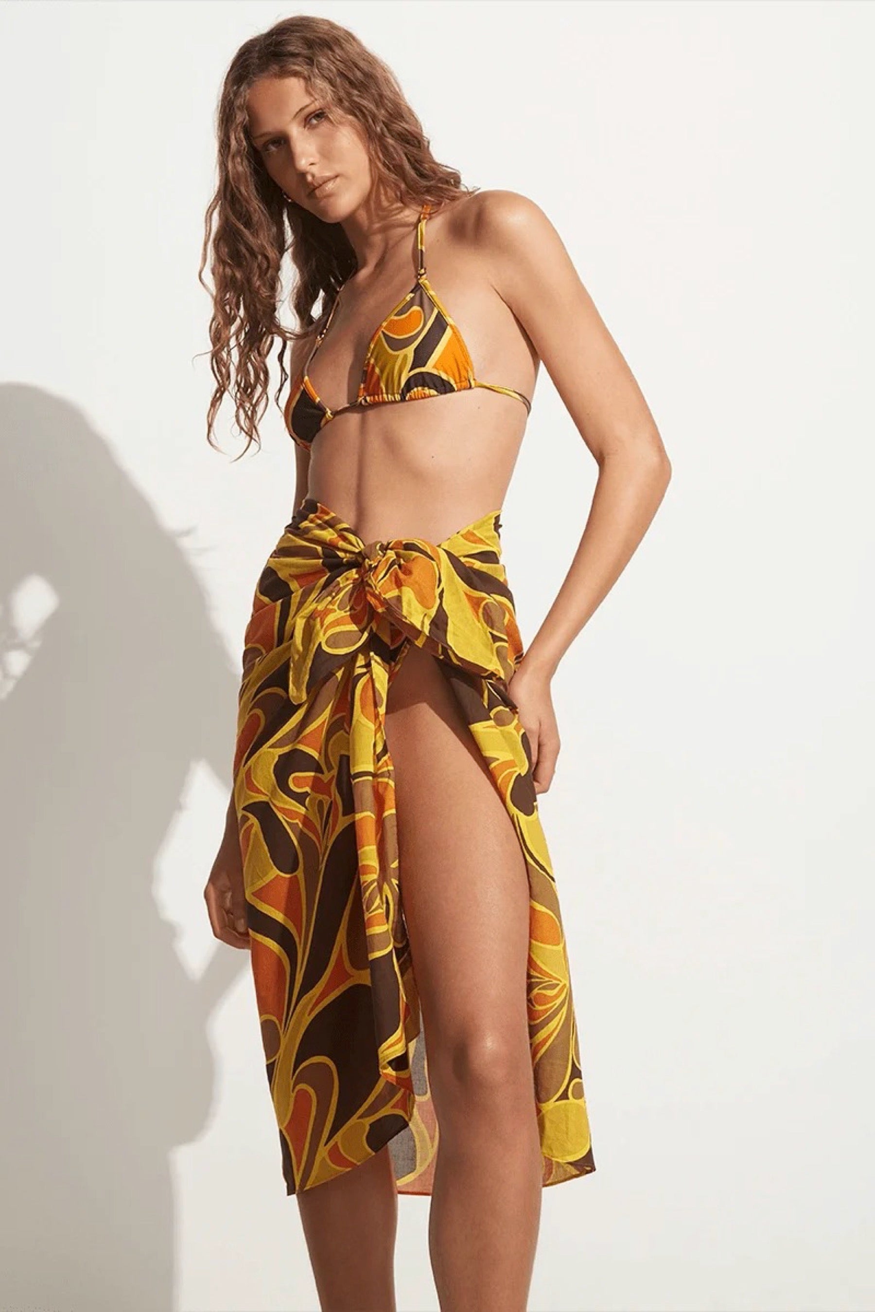Lightweight cotton voile is artisinally hand-dyed in a statement abstract print to form the Zinnia Pareo. Designed for multi-wear, this pareo can be worn on the hips or tied across the bust as a strapless cover up over swim. This style pairs back effortlessly with the Turmeric Bikini for elevated beach styling.