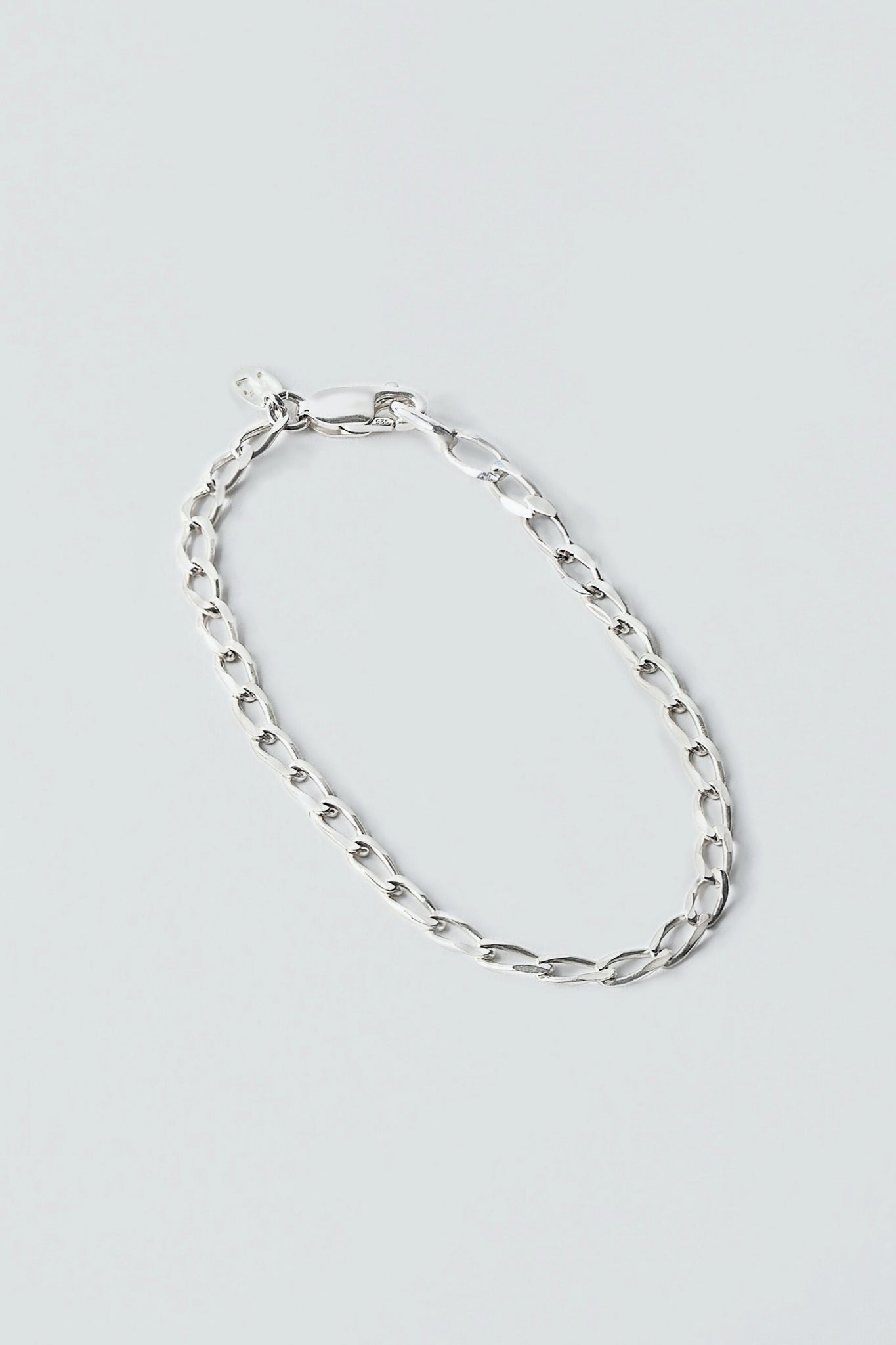 Sterling Silver elongated curb chain bracelet. Each piece of jewelry is designed and handcrafted in Vancouver, Canada.