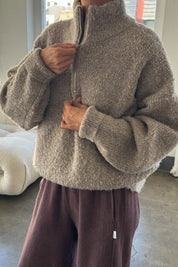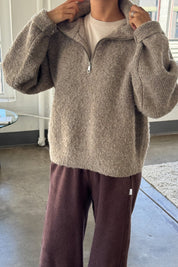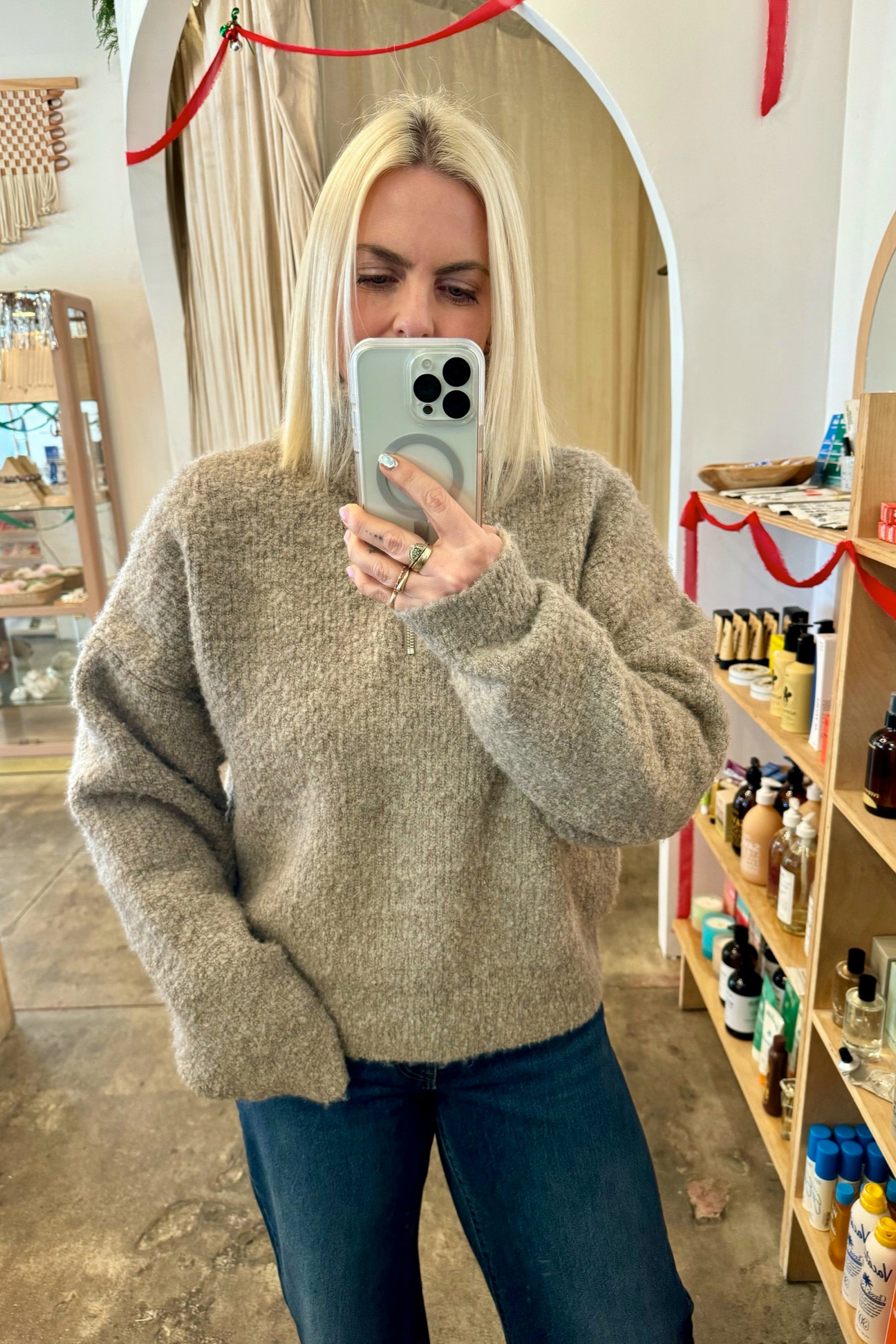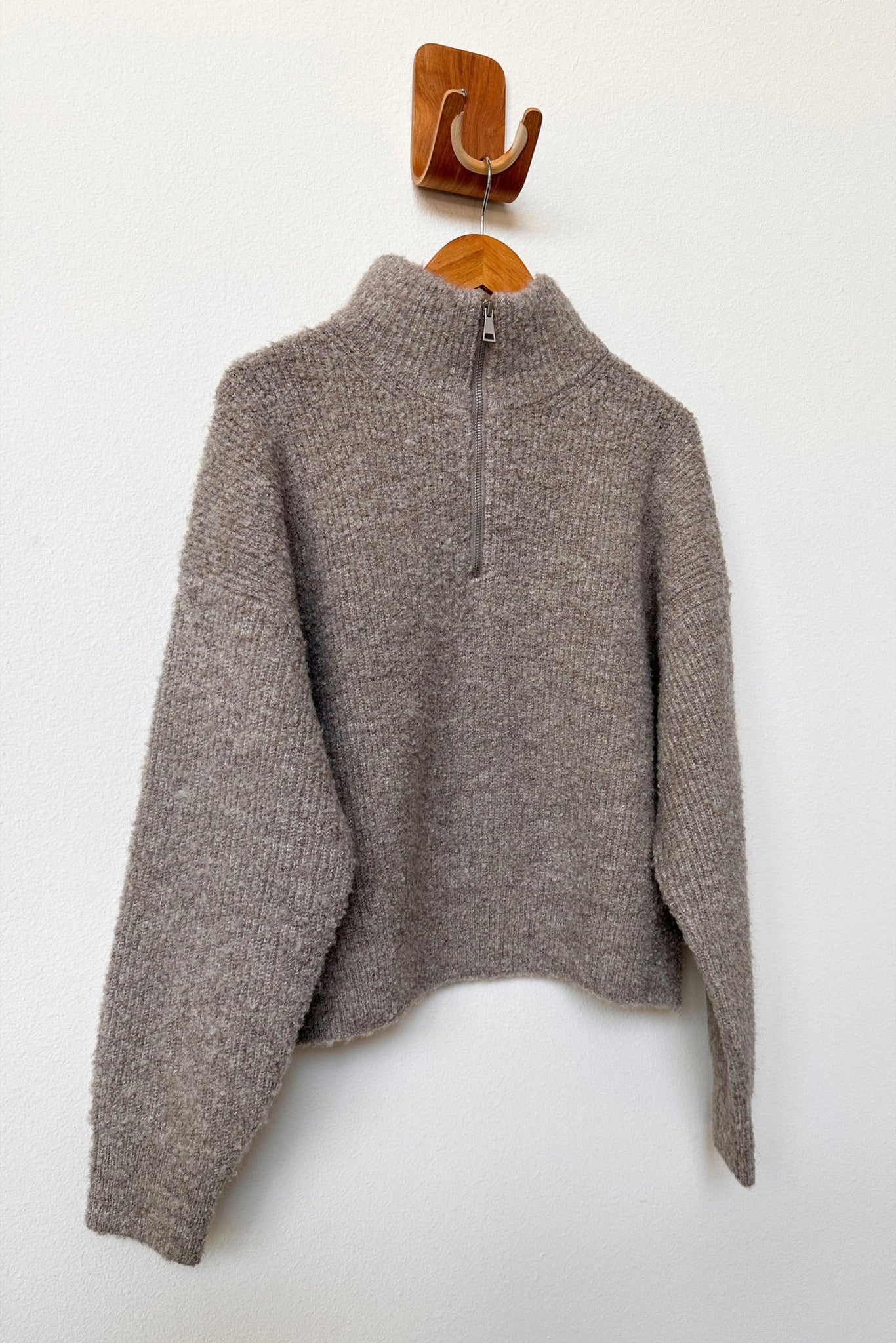 Looking for a cozy and stylish sweater to keep you warm this winter? Look no further than the Heather Grey Andre Sweater! Made with ultra soft and dreamy ENVIE yarn, this sweater is perfect for those cold days when you want to stay cozy and comfortable. The boxy fit is flattering on any body type, and the half-zip mock-neck style will keep your neck warm while making any outfit look on fire. Don't miss out on the Andre Sweater.