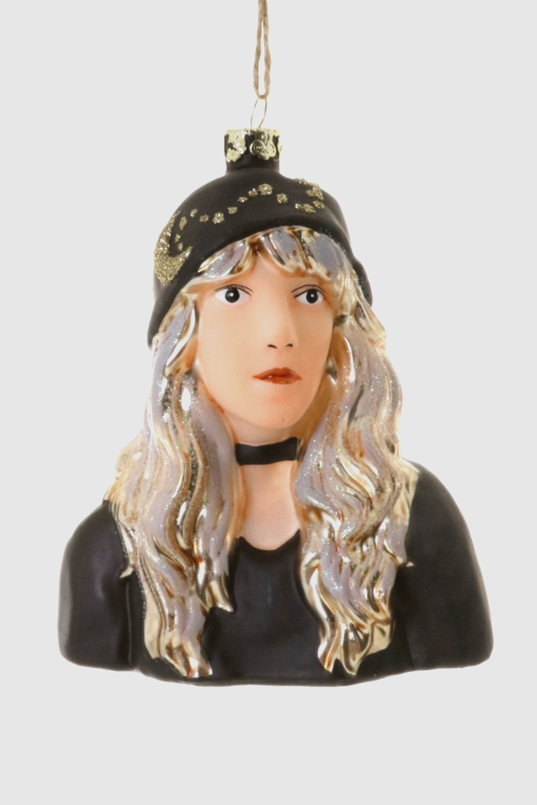Add a little bit of Stevie Nicks glamour to your holidays with this gorgeous ornament. Made of shimmering glass, it's 4" tall and comes with a gold cord for hanging. Pick up one for yourself and one for a friend – they make the perfect gift!