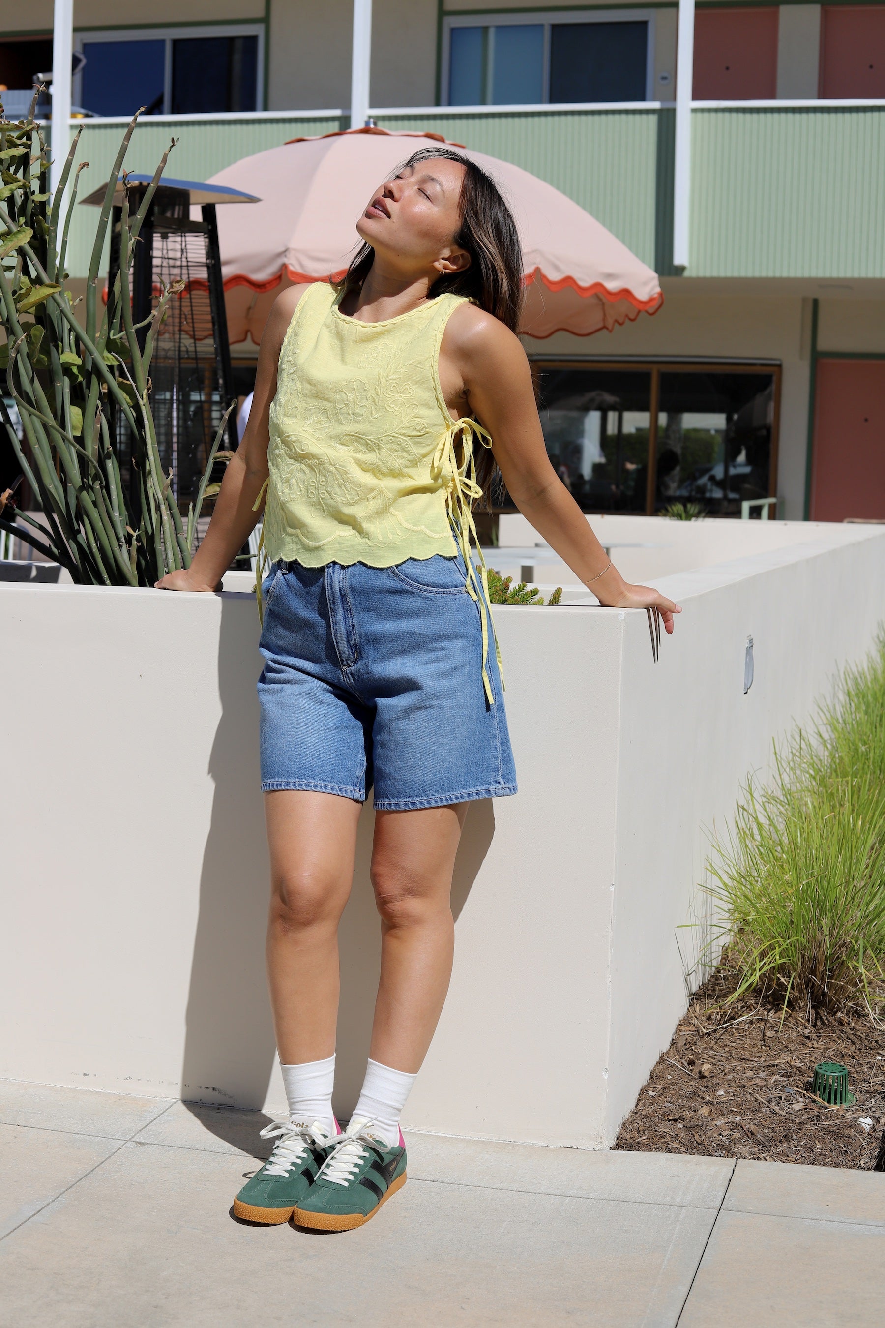 Effortlessly femme, this tank is featured in a soft cotton fabrication and boxy silhouette with floral embroidery and adjustable side-tie detailing.