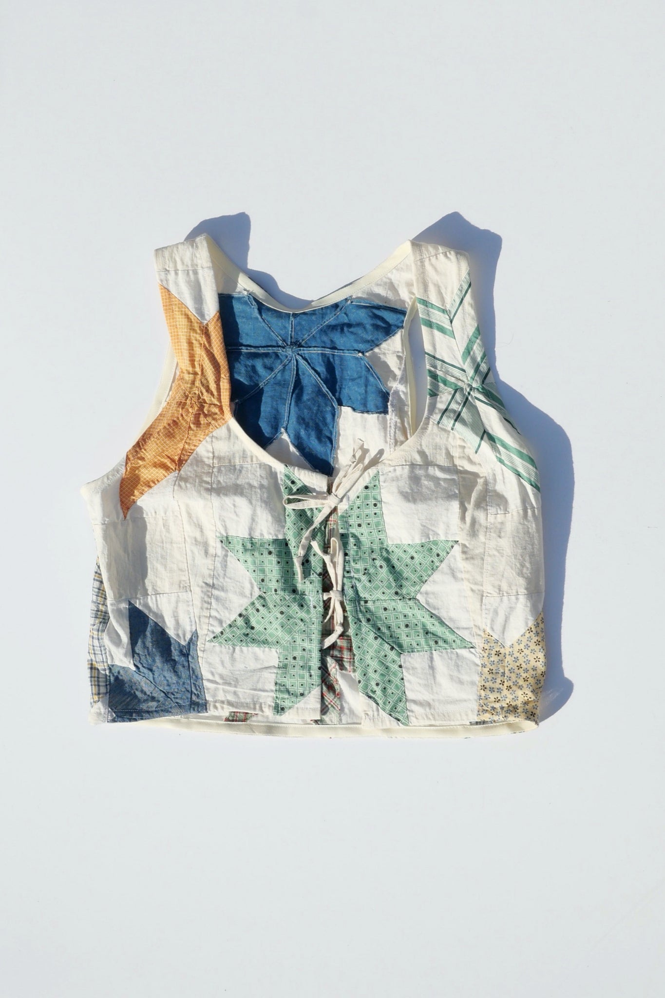 One of a kind tie front tank top handmade from vintage textiles in Long Beach, CA.