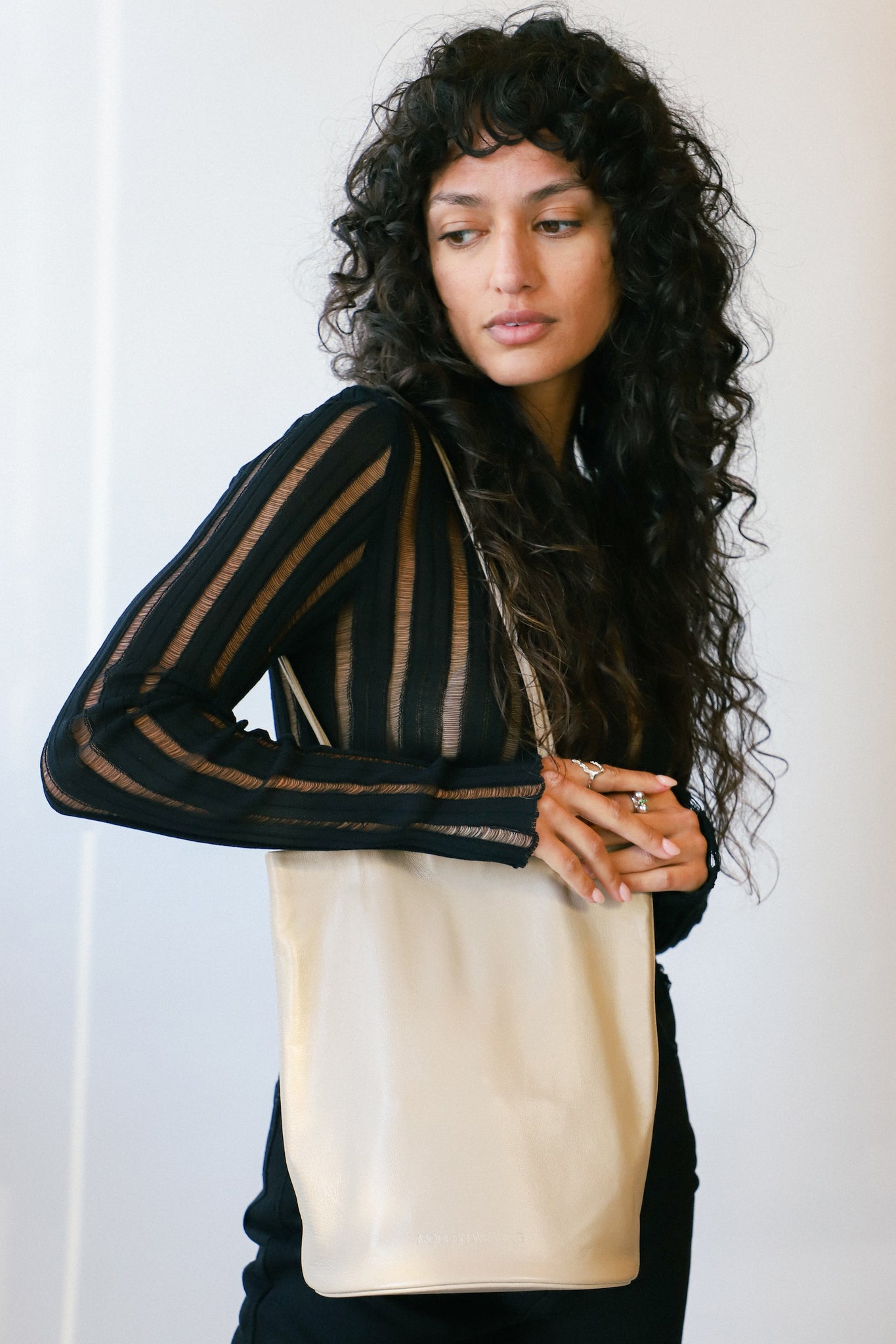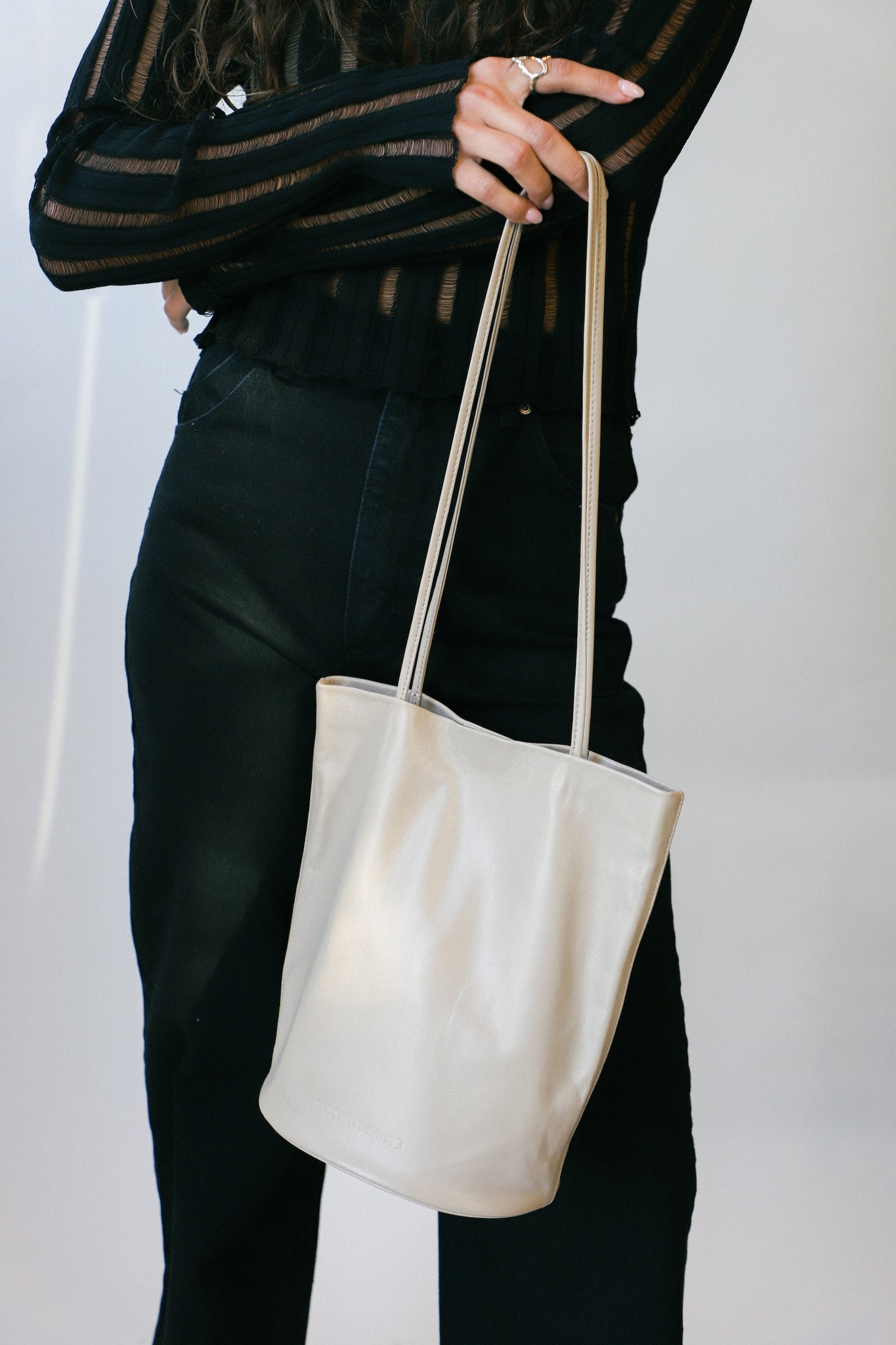 The Drape Oval Bucket is a simplistic carry-all for everyday needs. Unlined butter soft pliable leather with a beautiful hand and drape. Slim feminine straps and a soft-structure with reinforced base.