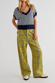 So cool and classic in a timeless checkered design, this essential sweater vest is featured in a staple V-neck, cropped silhouette for added versatility.