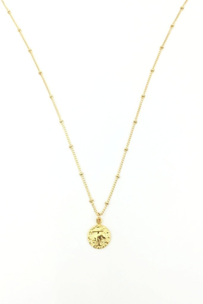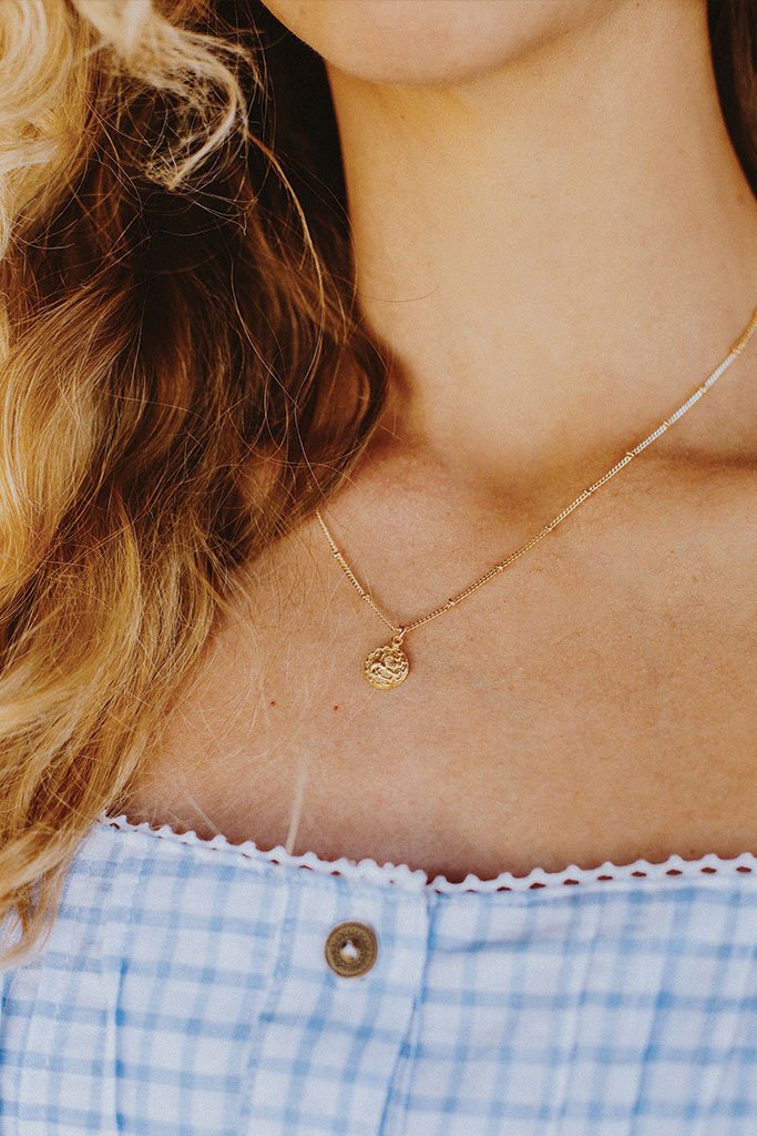 What's your sign babe? This zodiac sign necklace is dainty and plated with 10k gold metal. It has a satellite chain featuring a little zodiac charm.
