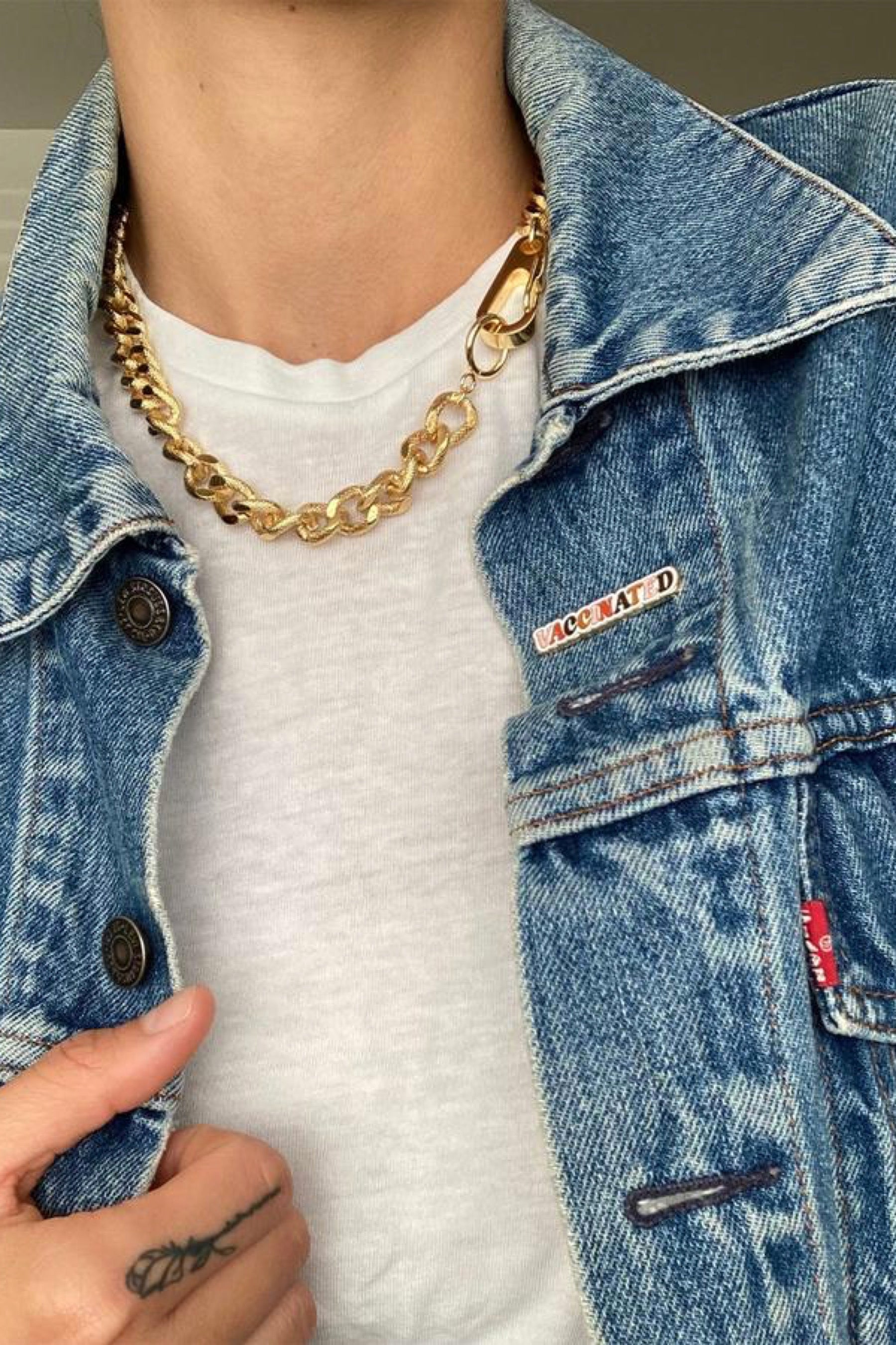 Let the world know with Jurate's cute "VACCINATED" enamel pin that makes a fun addition to any outfit or bag