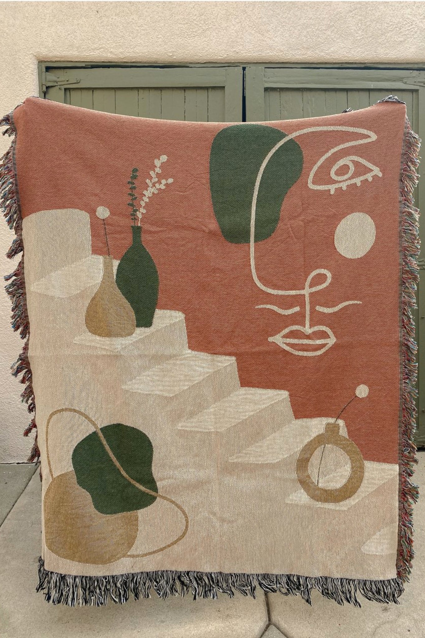 Vases, stairs and abstract shapes, this new home decor addition is beautifully woven with cotton threads and made in the USA.