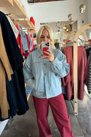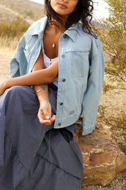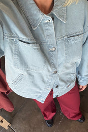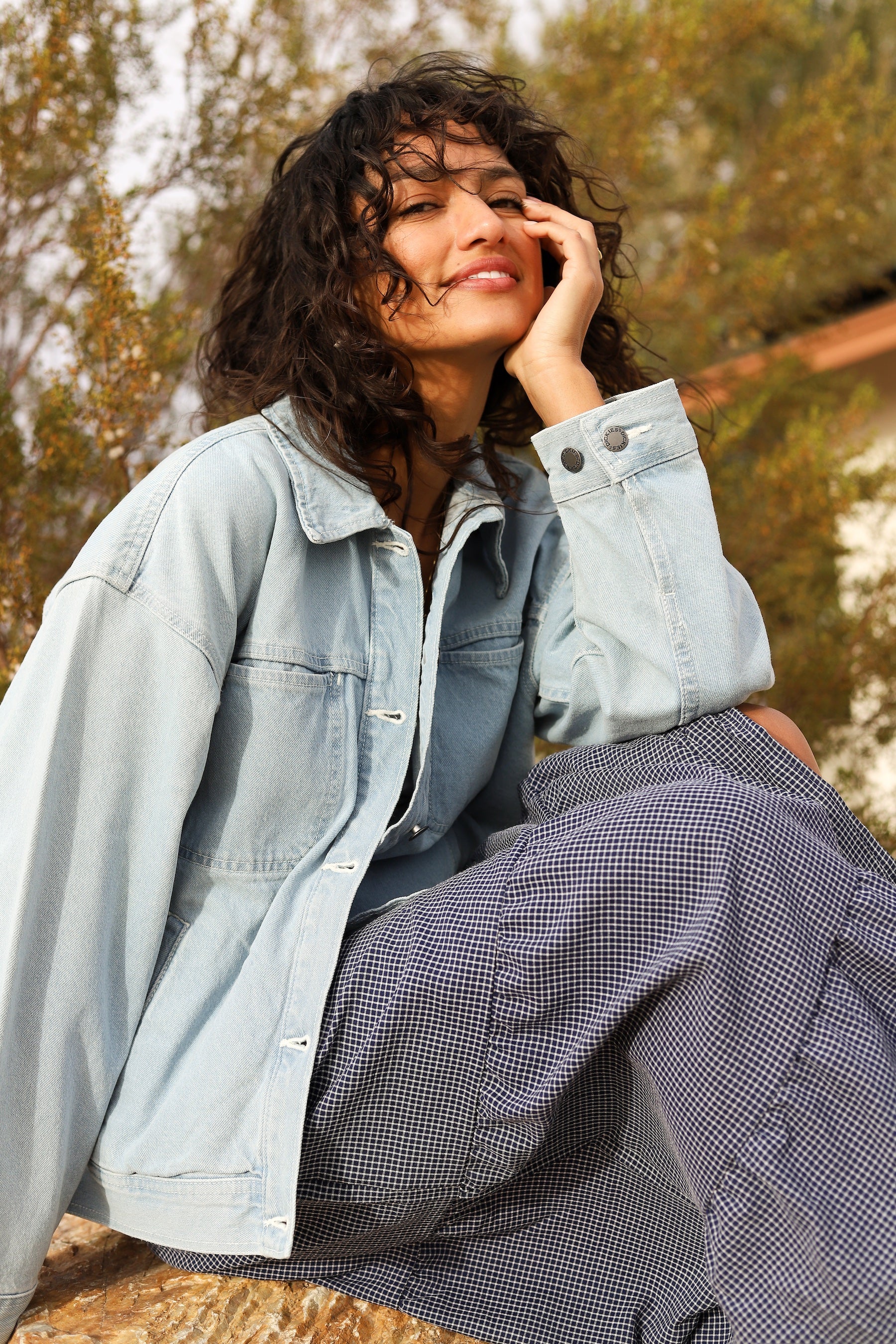 Expertly crafted for comfort and style, our Washed Denim Jacket is the perfect addition to your wardrobe. The light wash finish gives a relaxed, yet polished look while the oversized fit allows for easy layering.