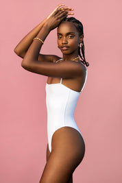 The Elile bodysuit, is a wardrobe essential, perfected. The modern classic with a square neck detail. Constructed from a stretchy smooth fabric that gives you the signature OMA hold. This piece is easy to take from day to night. Compression fabric, stretch fit.