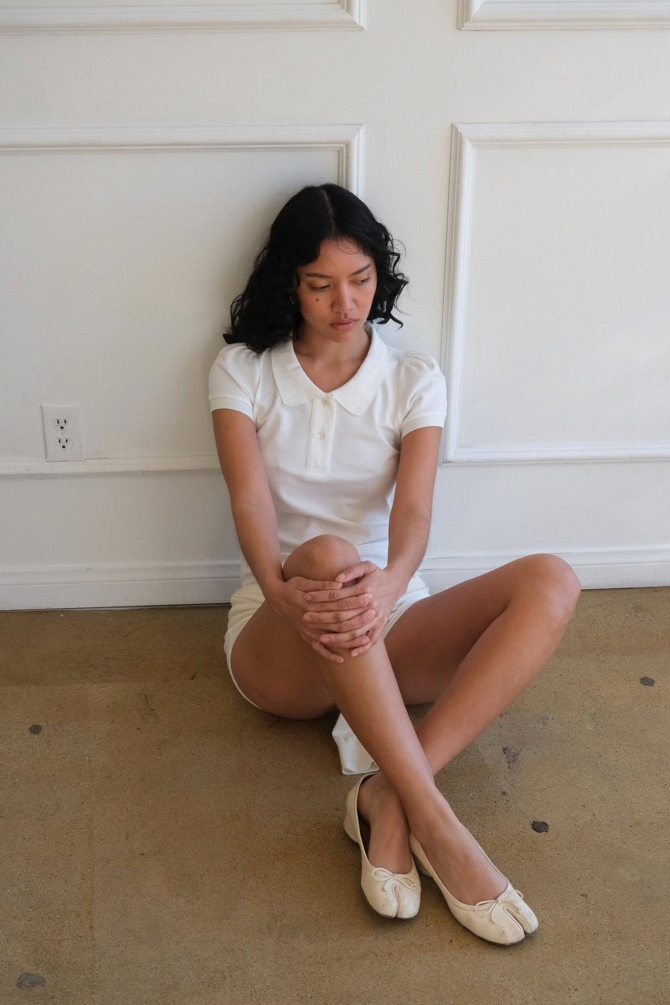 Featuring delicate puff sleeves and a rounded collar, it adds a subtle feminine twist to a sporty silhouette.