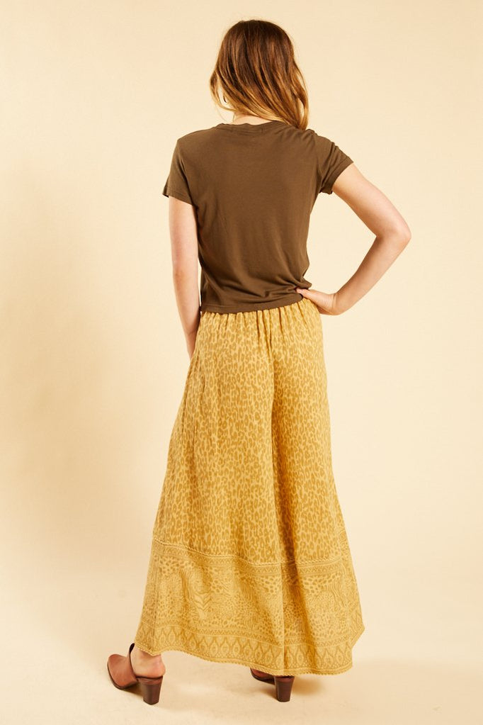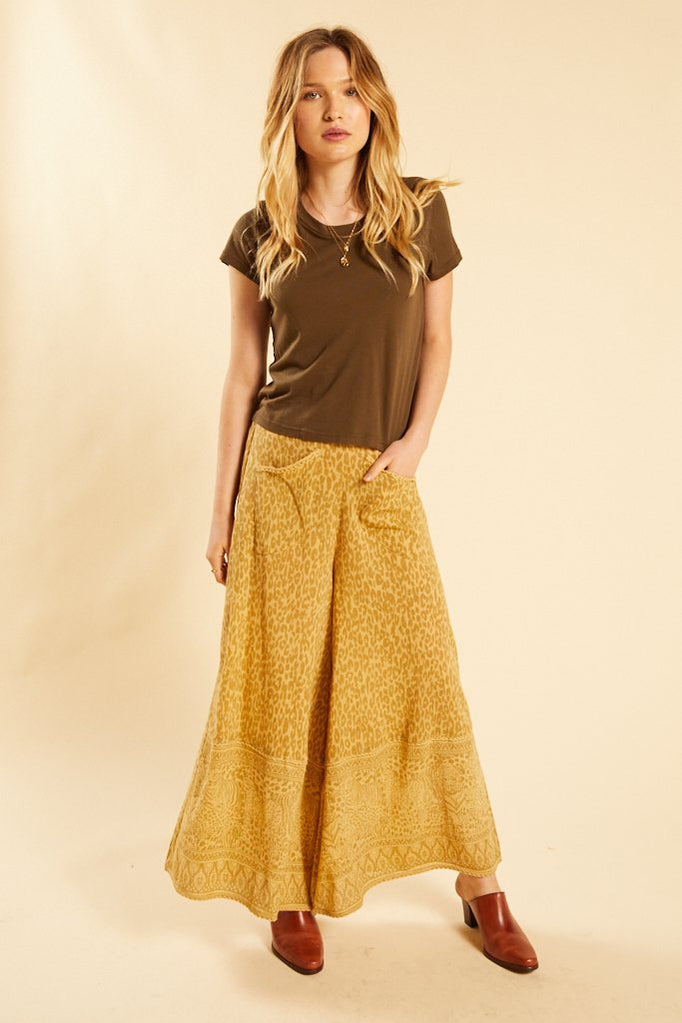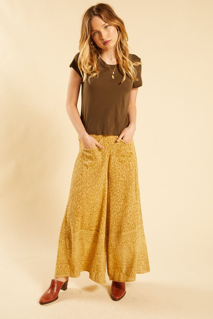 Spells sassy Wild Thing Wide Leg Pants in mustard with their charming two front pockets and comfy elastic waistband at the back are an easy-wear style with plenty of flirty fun. This floaty, wide leg style in a classic animal print, elegantly paired back to a neutral tone, is expertly softened with delicate cotton lace trim on the pockets offering a chic and feminine touch to this enchanting style. Certain to be a collection favourite, this unlined piece is crafted in luxe organic cotton crepe and are as comfortable as they are alluring.