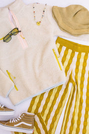 The Brady Pant is the perfect Fall pant. Made from Organic Cotton this pant is lightweight and with just enough stretch, and a fun pattern for comfy statement piece. Features an elastic waistband and a slight bootcut silhouette.