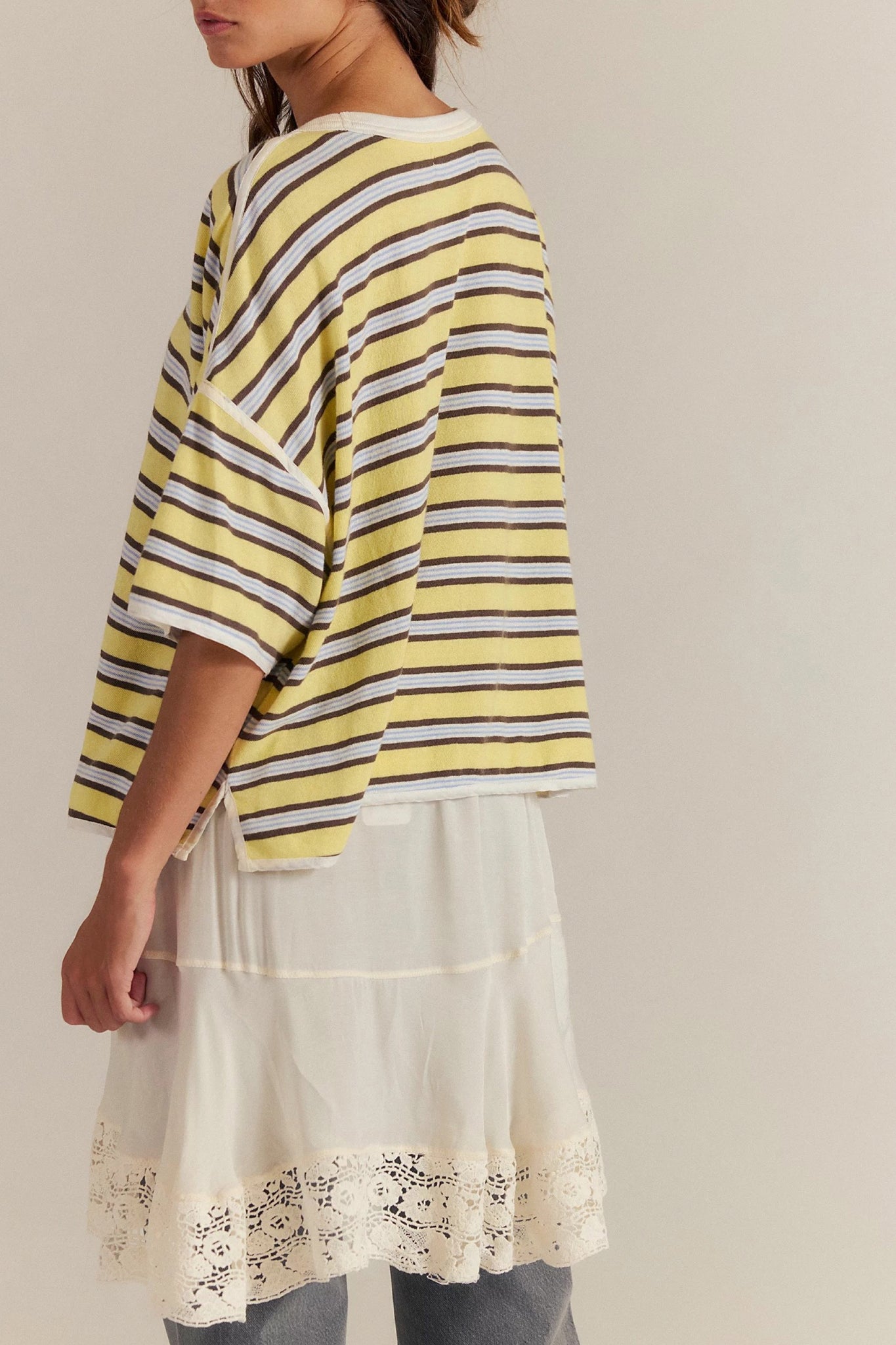 Sporty, retro, comfy, bringing all of our favorite vibes into one tee with this staple option from We The Free, featured in a cropped, boxy fit with a fun striped print and extra wide short sleeves.